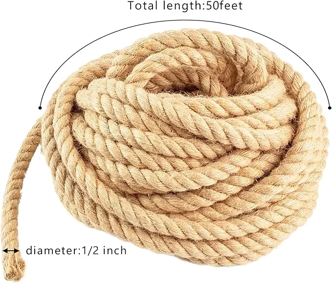 100% Natural Hemp Rope 49 Feet 1/2 inch Ply Jute Rope