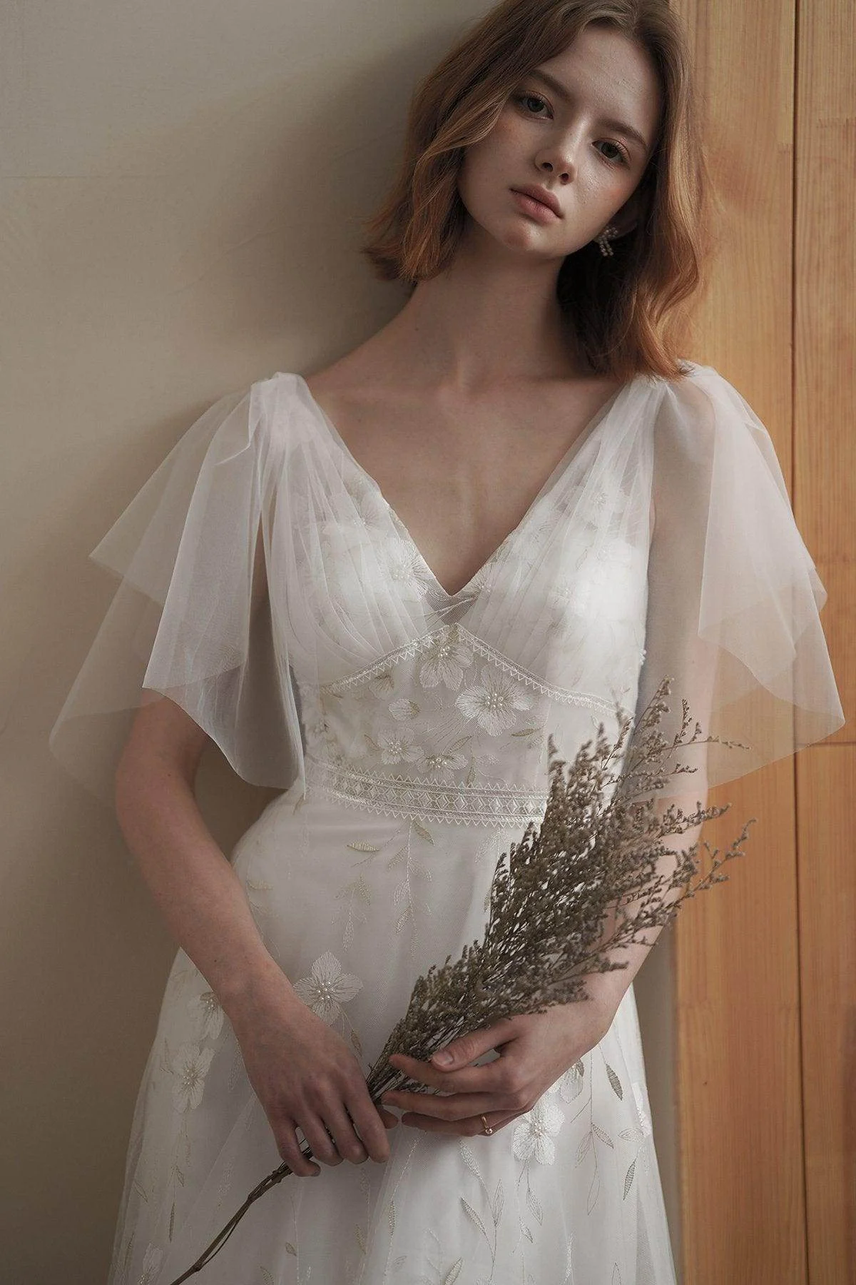 Cocomelody A-Line Sweep-Brush Train Lace Tulle Wedding Dress