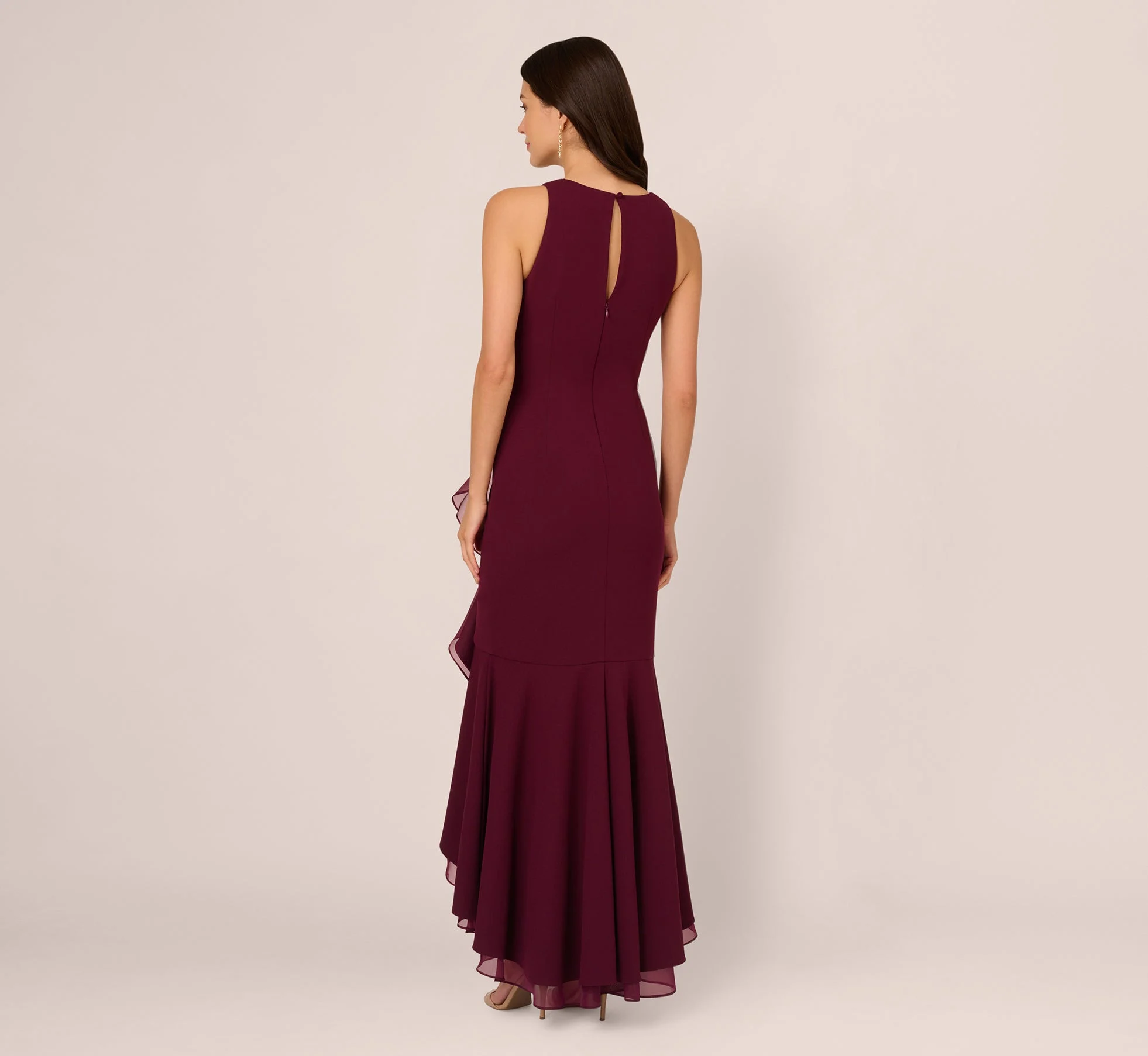 Adrianna Papell High Low Crepe Halter Gown With Organza Draping