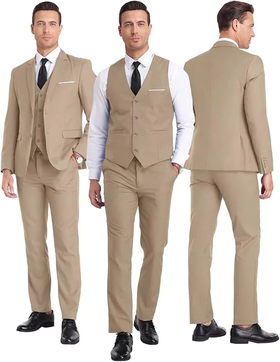 Aowdoy Men’s Suit 3 Piece Wedding Suits 2 Buttons Slim Fit Tuxedo Set