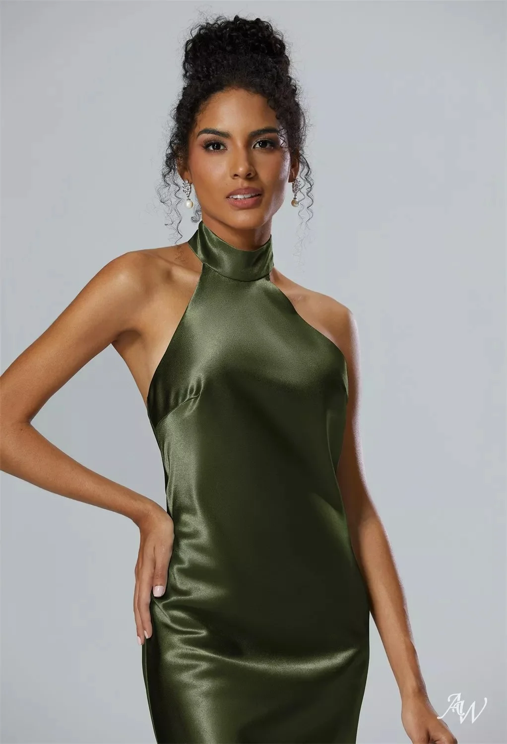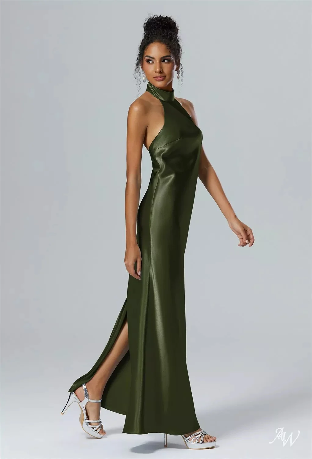 Enchant the room with a dream-like backline. This classy bridesmaid dress owns a halter neckline and mermaid cut accentuates an hourglass silhouette, flattering every curve.