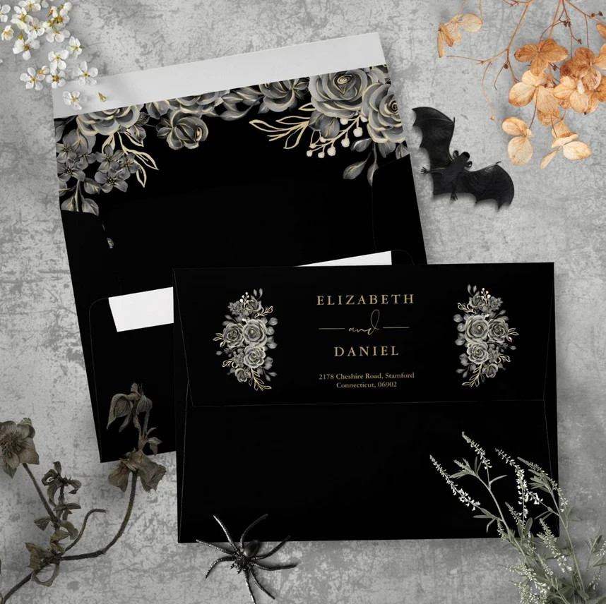 Black And Gold Gothic Roses Floral Wedding Suite