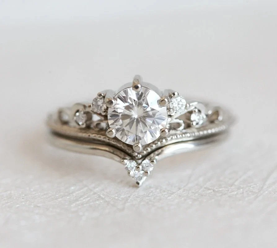 Capucinne Bella Vintage Moissanite And Diamond Ring
