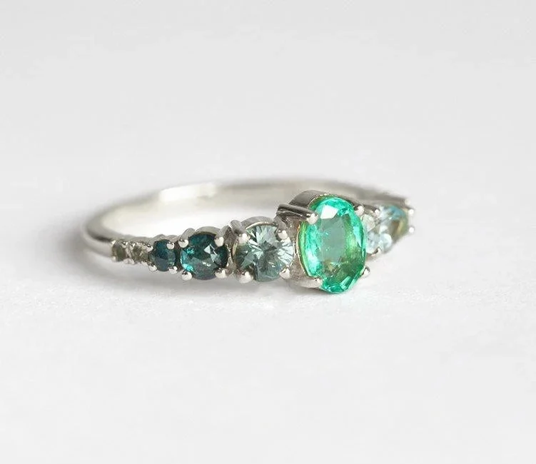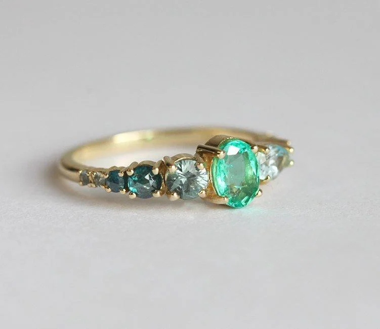 Everyone wants a relationship worthy of envy – and this cluster ring is certainly a romantic way of making that clear! The Capucinne Brighton cluster ring features an oval Emerald, white and blue Diamonds, a blue Sapphire and a blue Aquamarine. An ethereal piece of jewellery that will be fit for your engagement or wedding day.