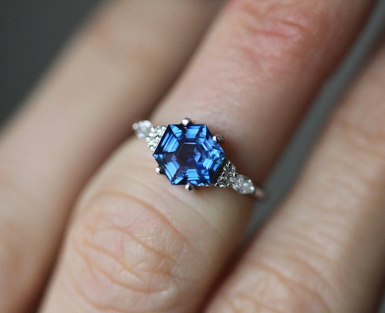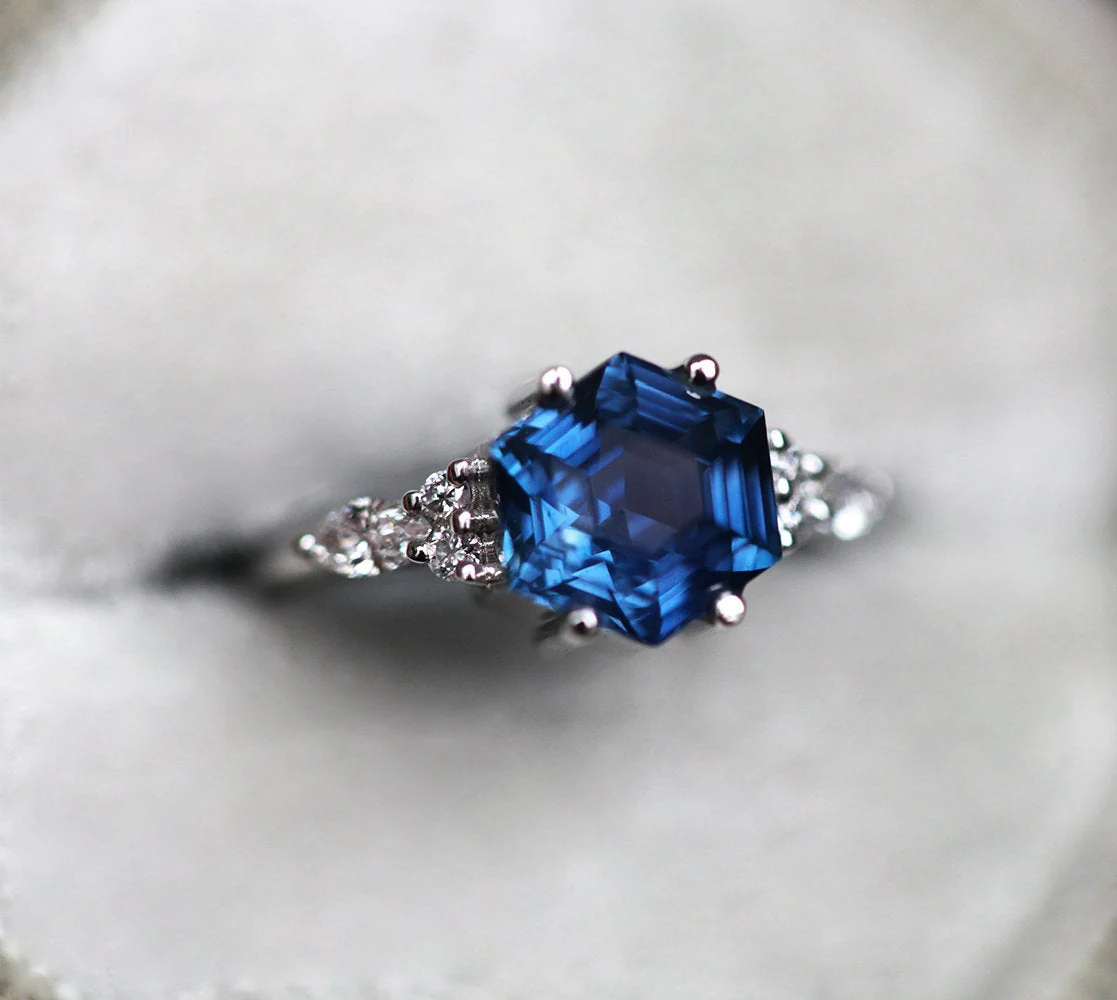 Capucinne Cecilia Hexagon Sapphire Diamond Ring