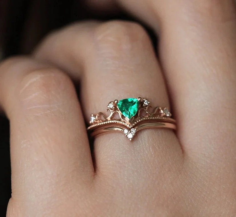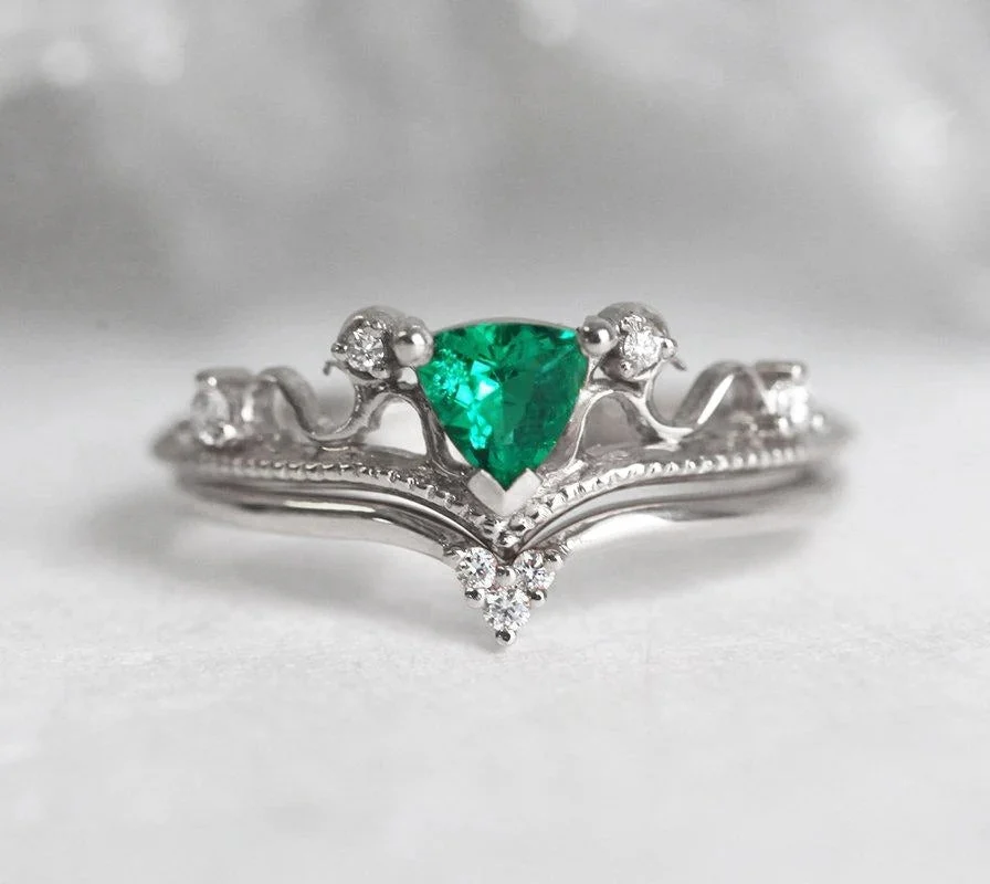 Capucinne Elsa Emerald Ring Set