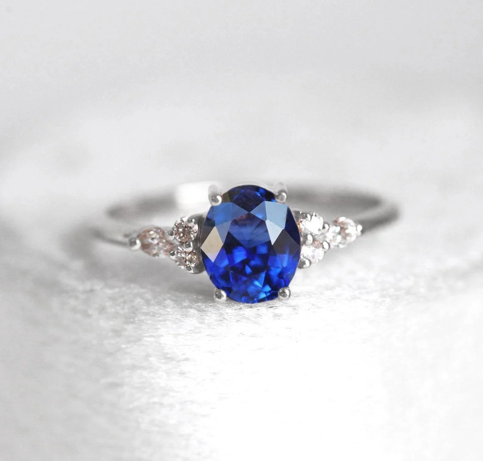 Capucinne Evelyn Oval Blue Sapphire Diamond Ring