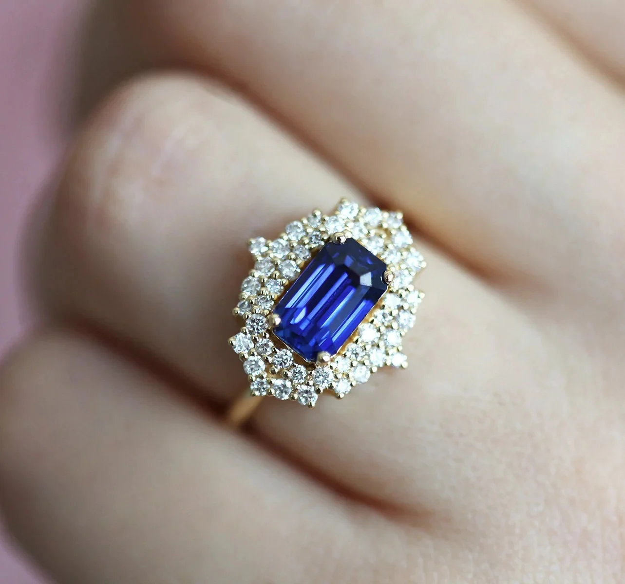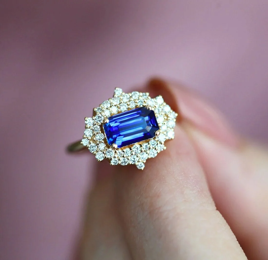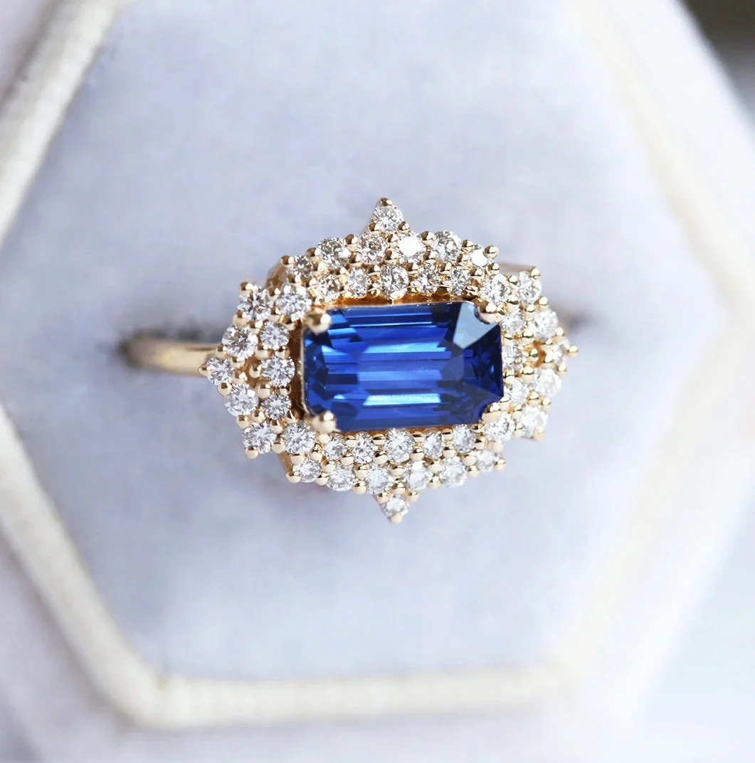 This royal blue sapphire diamond ring is far from being obscene. It is made to highlight the wearer through high notes of delicacy and elegance.