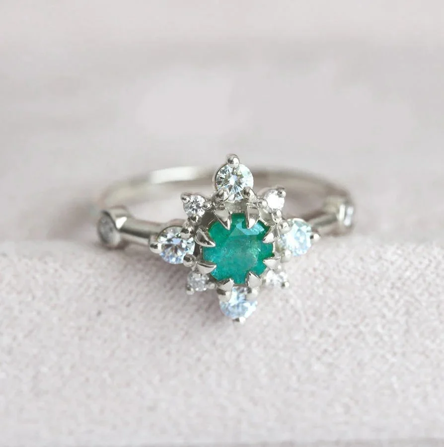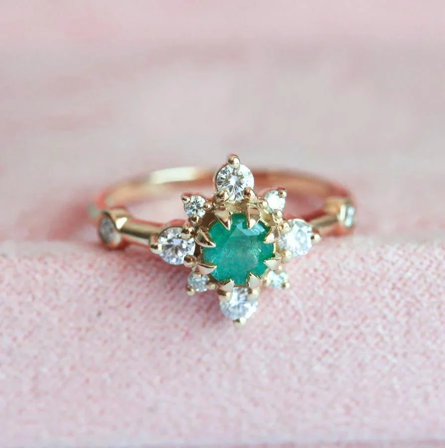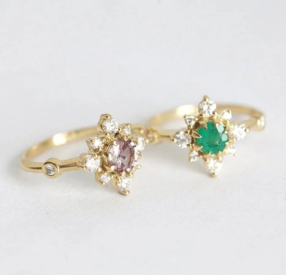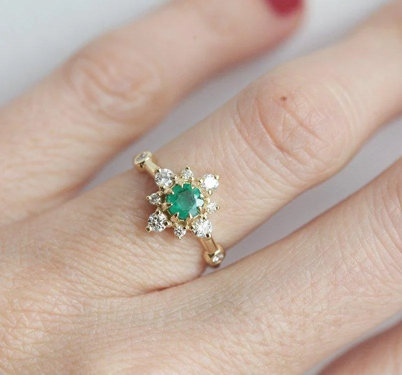Capucinne’s Leslie ring is perfect for those looking for something special, vintage-inspired yet modern enough to wear every day. With a half-diamond halo and unique green emerald, this makes the perfect birthstone ring to gift to those born in May.