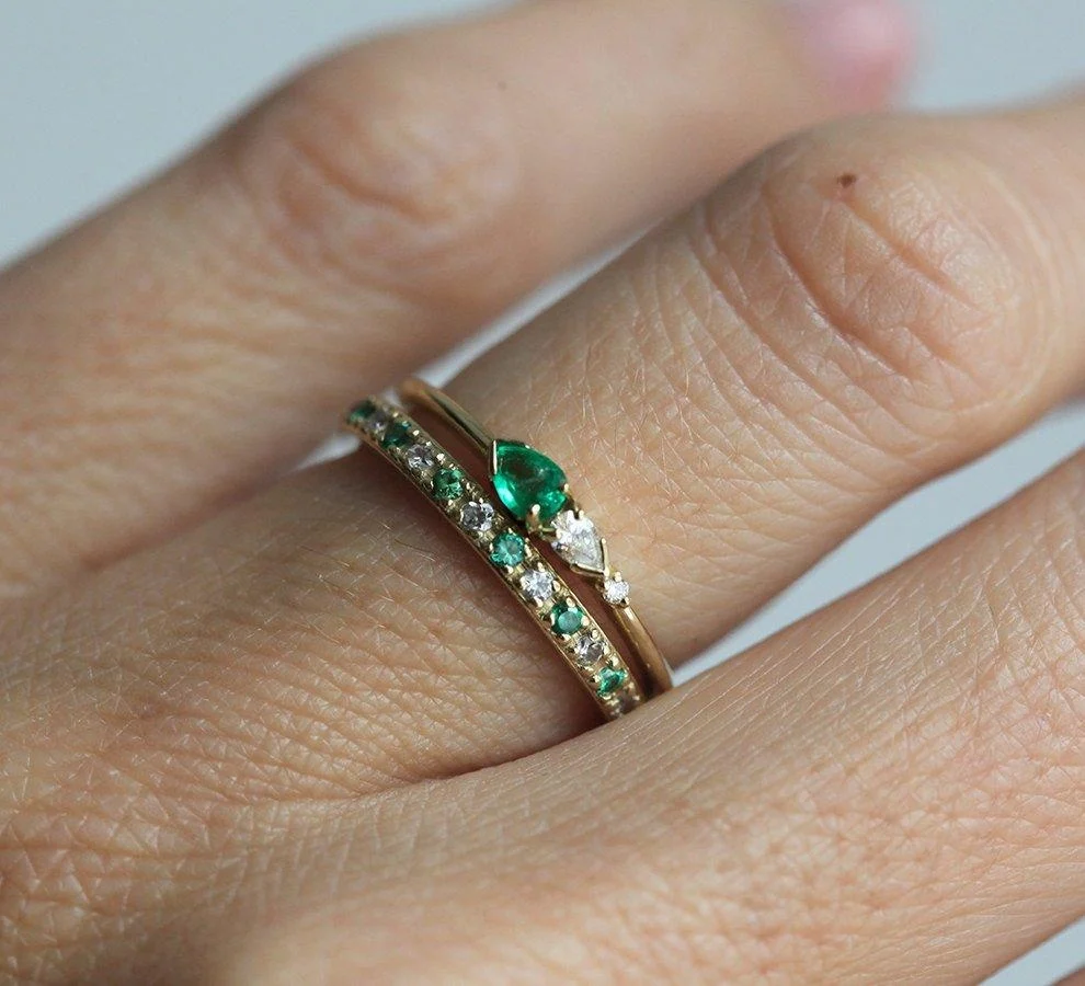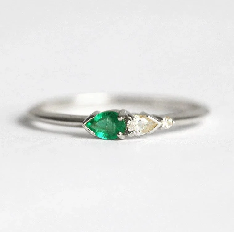 Capucinne Martina Pear Emerald Diamond Ring