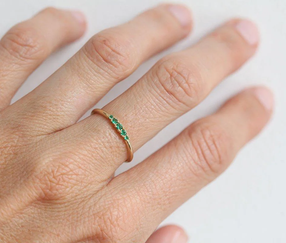 The Monroe ring features a five-gem design, making it a beautiful gemstone or birthstone band. Whether it is for your engagement, anniversary or simply a gift, this beautiful band will dazzle with its design.