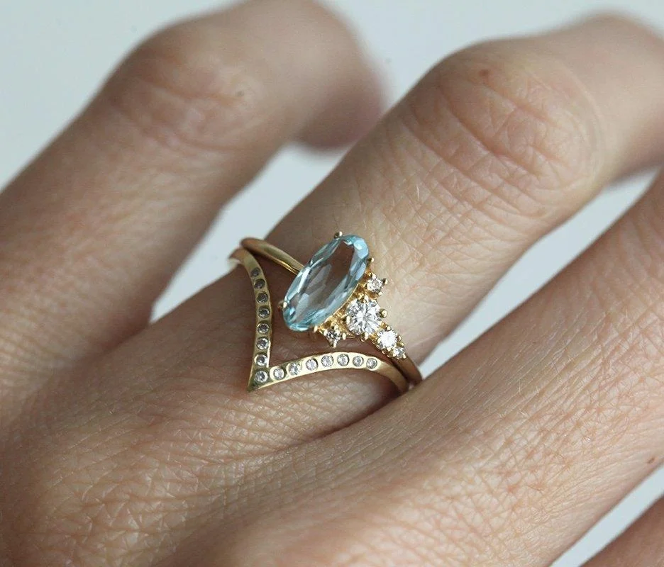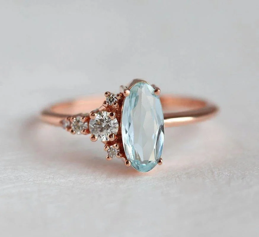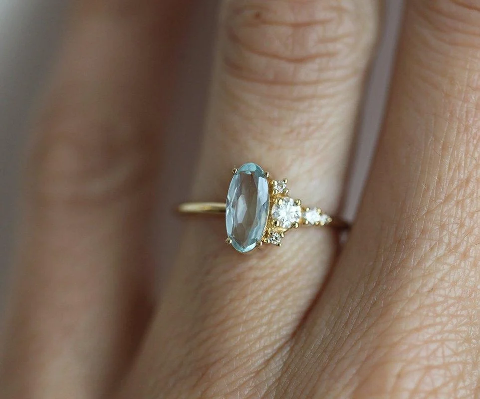 Capucinne Paityn Oval Aquamarine Diamond Ring