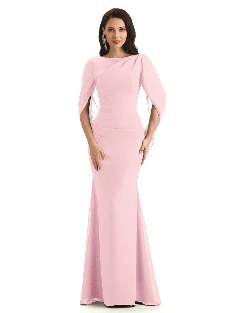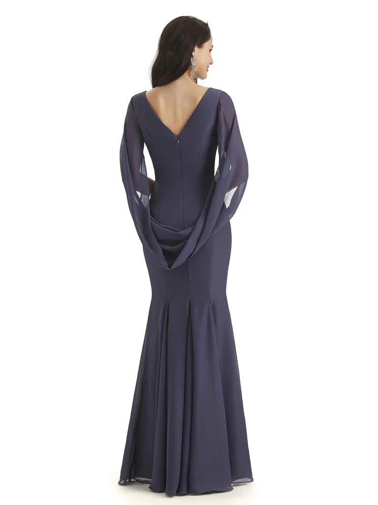 Chicsew Casual Mermaid Chiffon Half Sleeves Long Dress