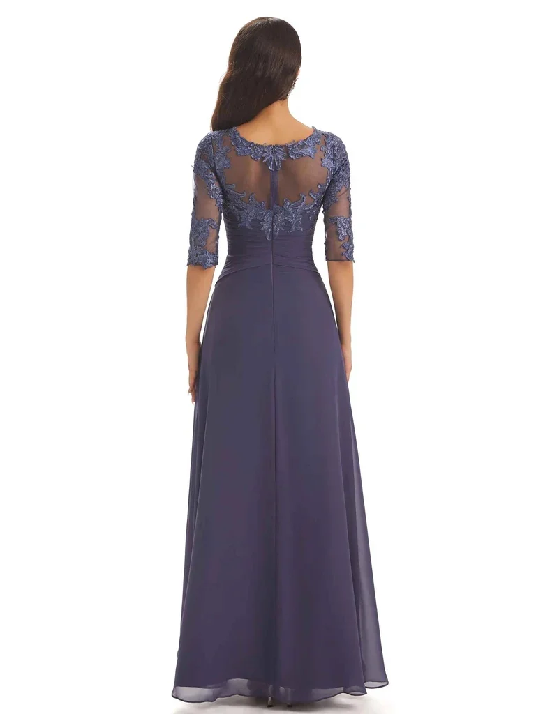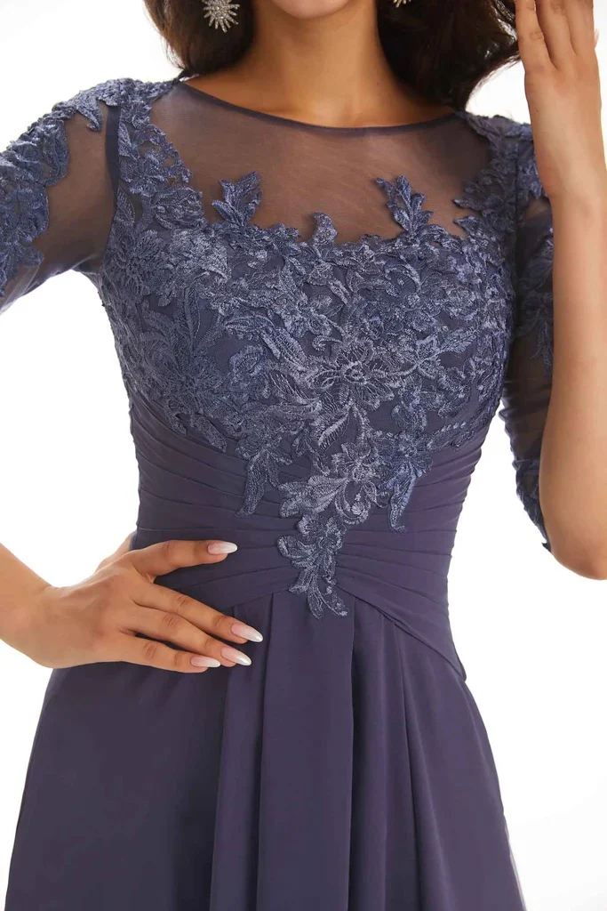 Chicsew Half Sleeves Appliques Chiffon Elegant Floor-length Dress
