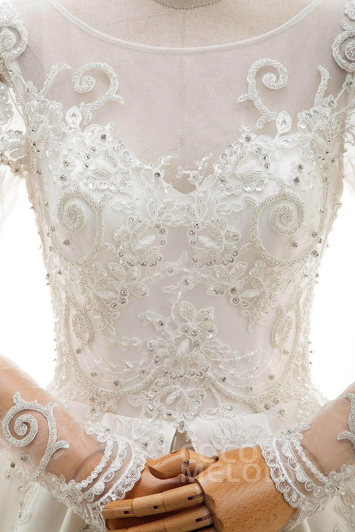 Cocomelody A-Line Cathedral Train Tulle and Satin Wedding Dress