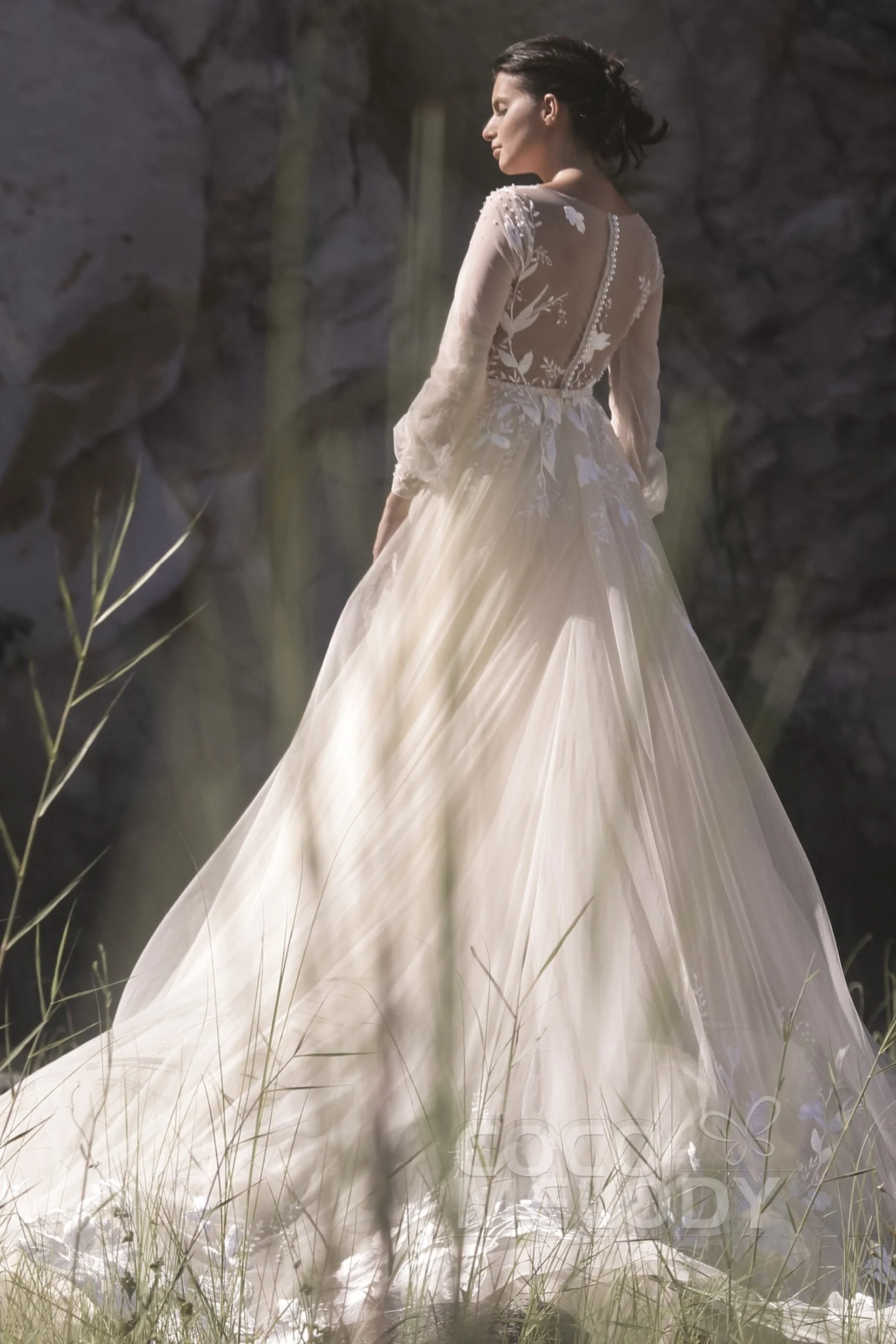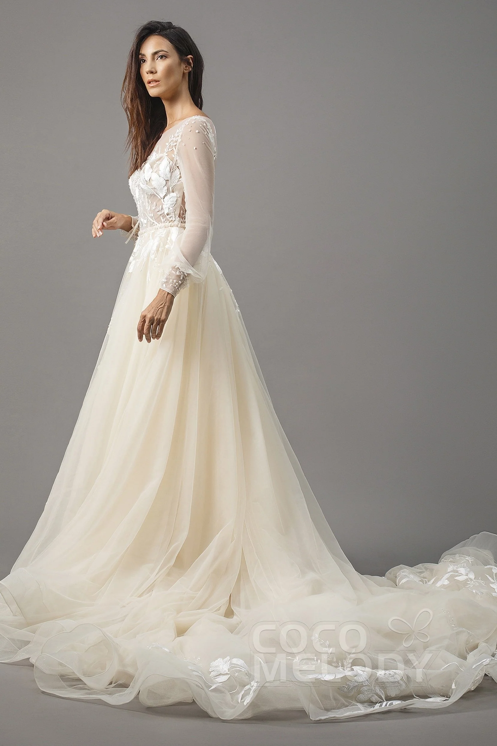 Cocomelody A-Line Chapel Train Tulle Wedding Dress