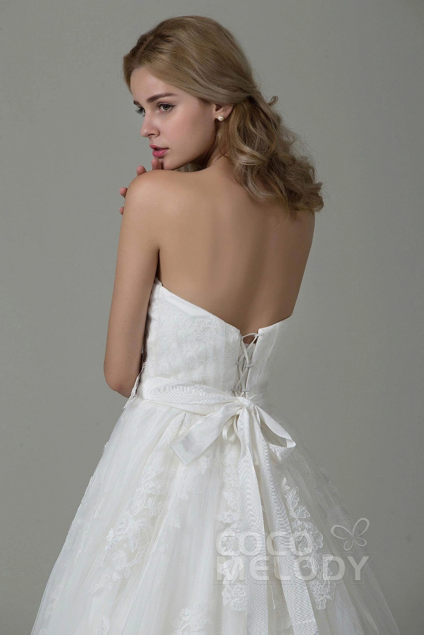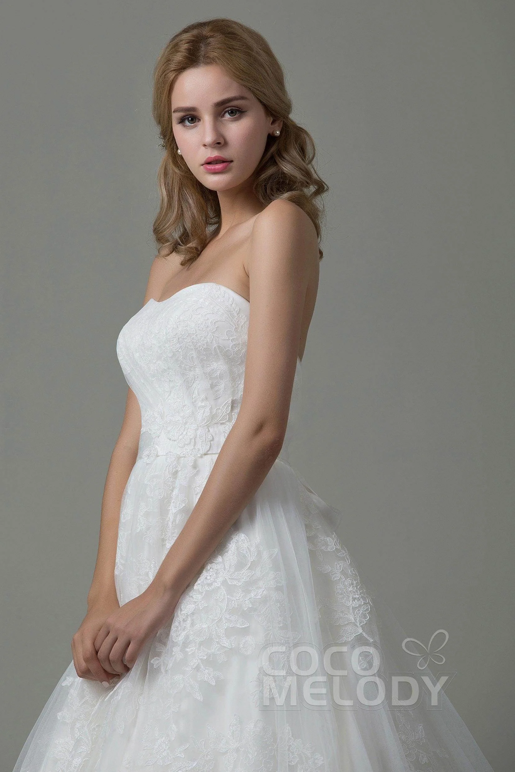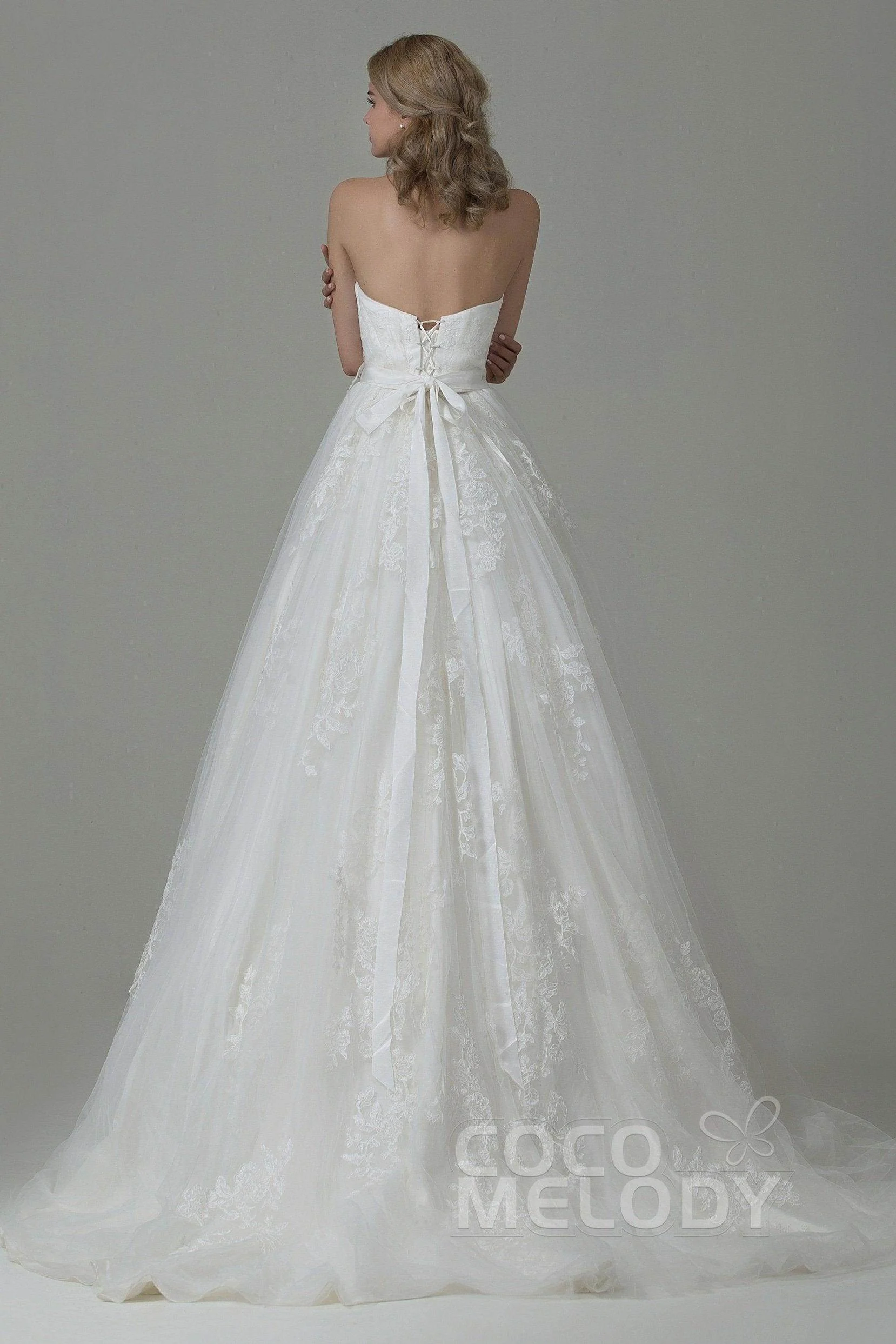Cocomelody A-Line Court Train Tulle and Lace Wedding Dress