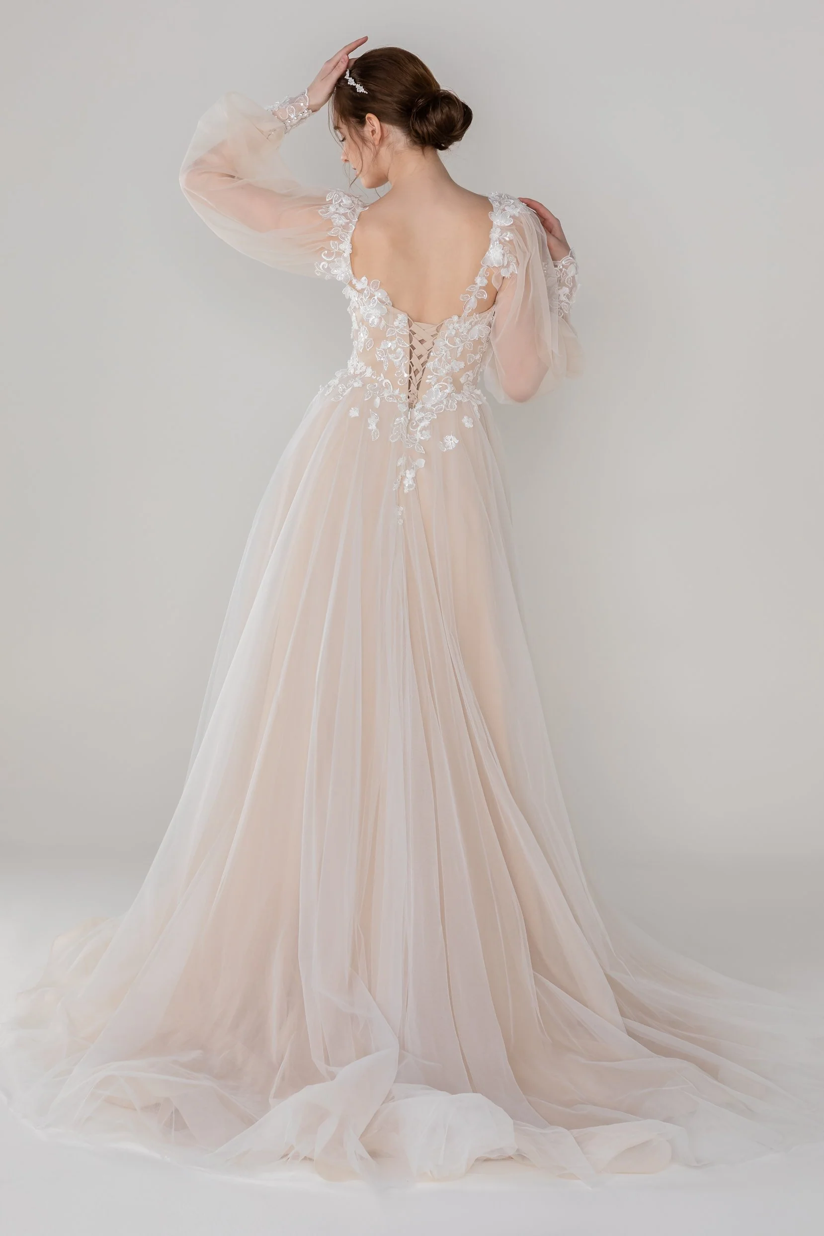 Cocomelody A-Line Court Train Tulle Wedding Dress