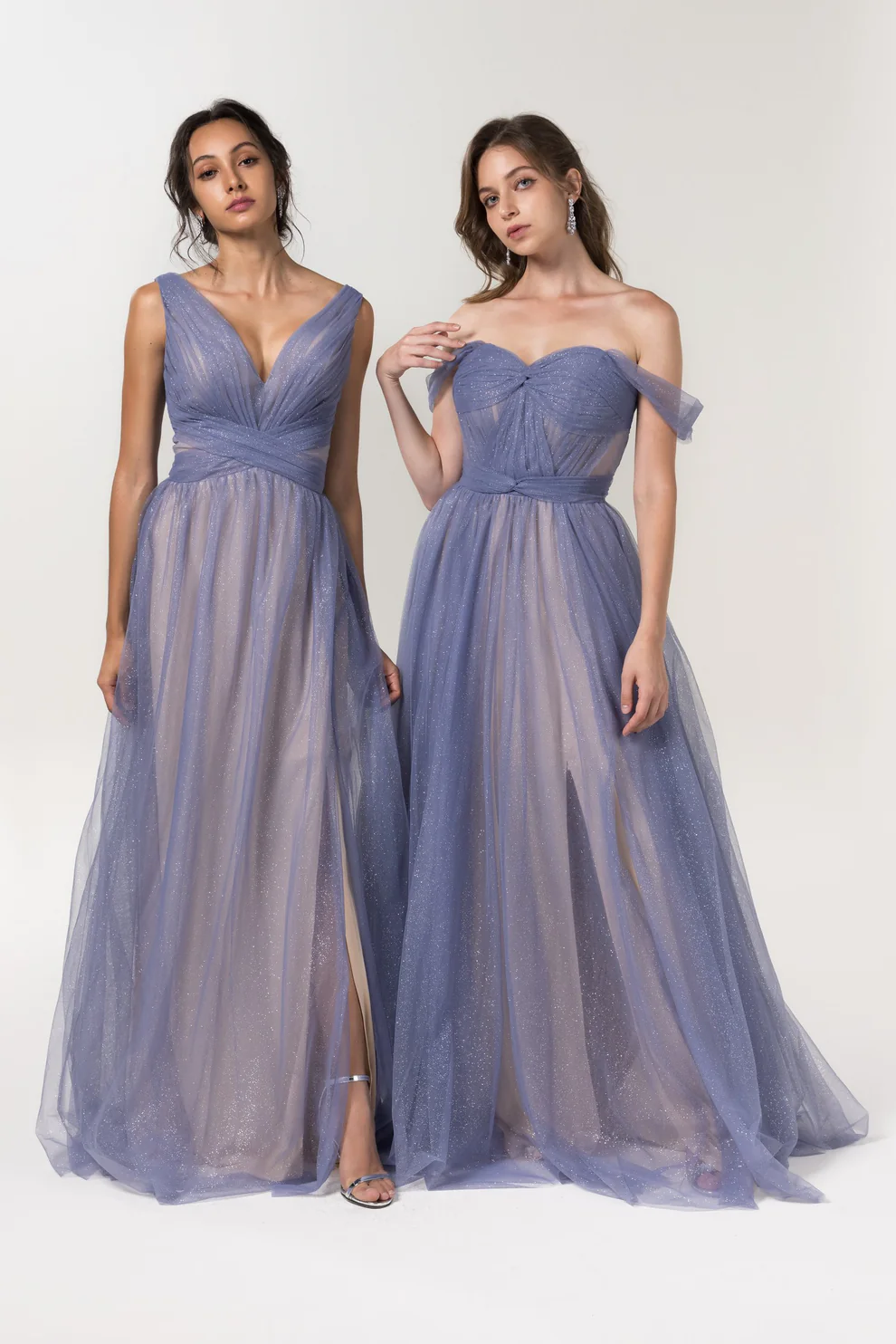 Cocomelody A-Line Floor Length Sparkling Tulle Bridesmaid Dress