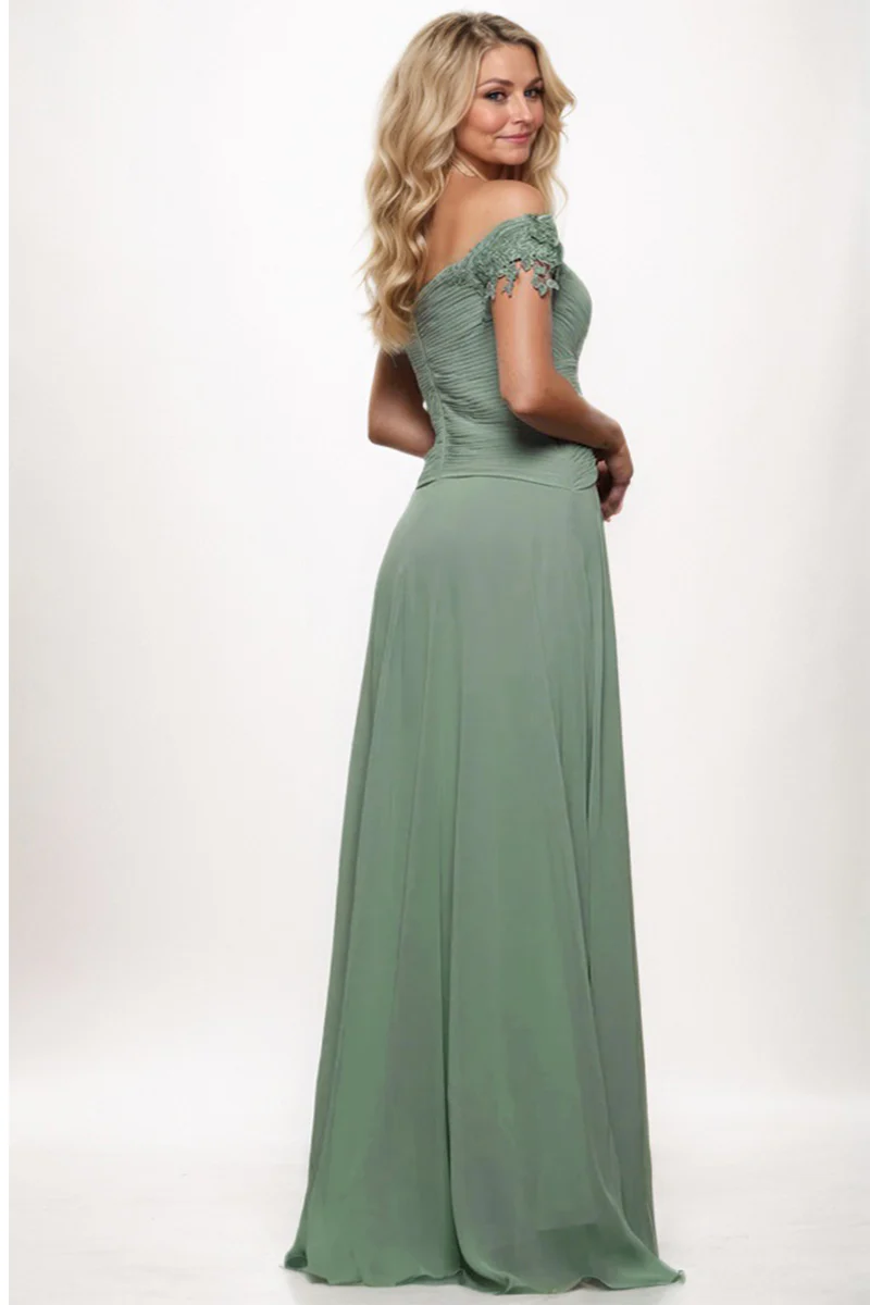Cocomelody A-Line Lace Embellished Maxi Chiffon Mother Dress