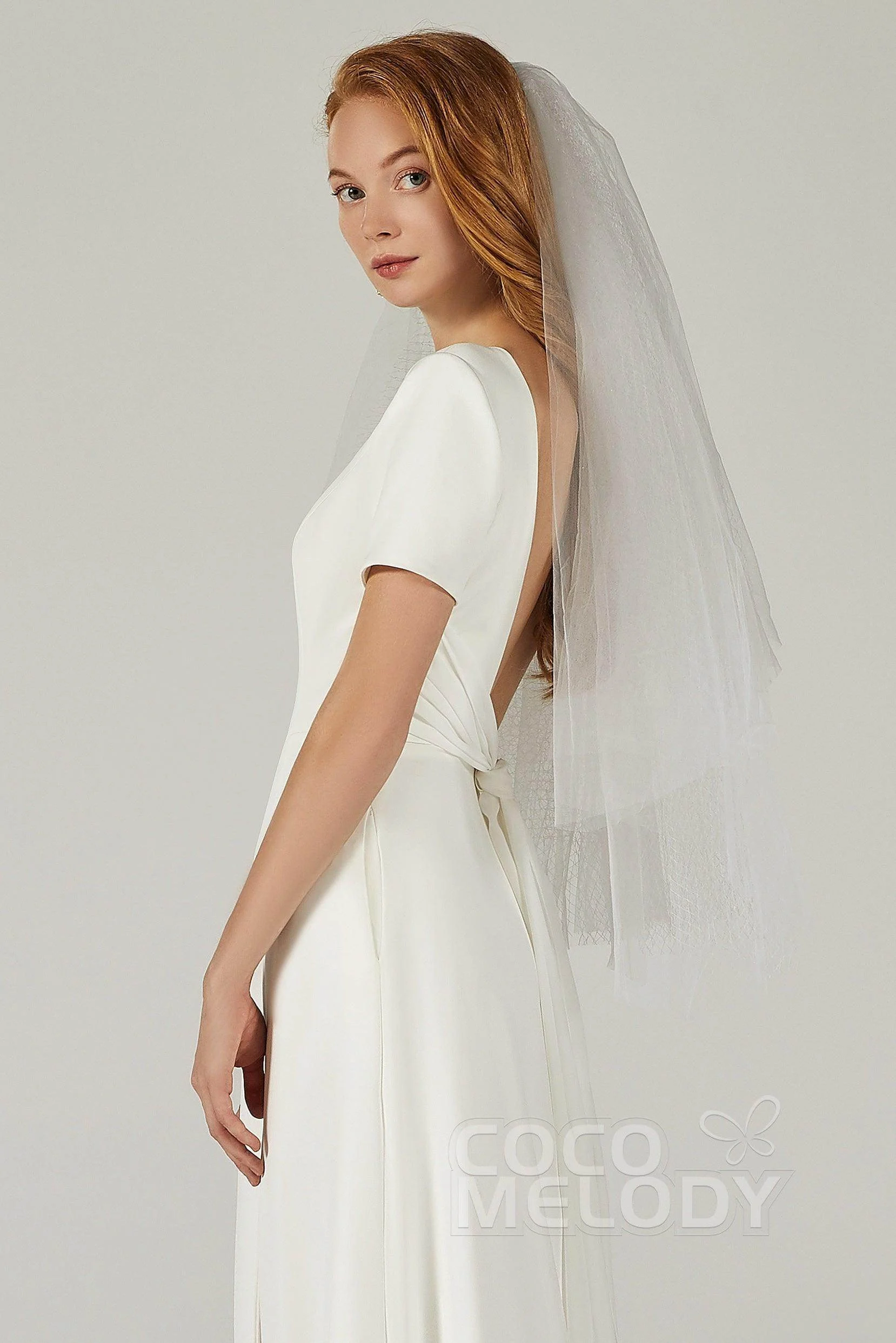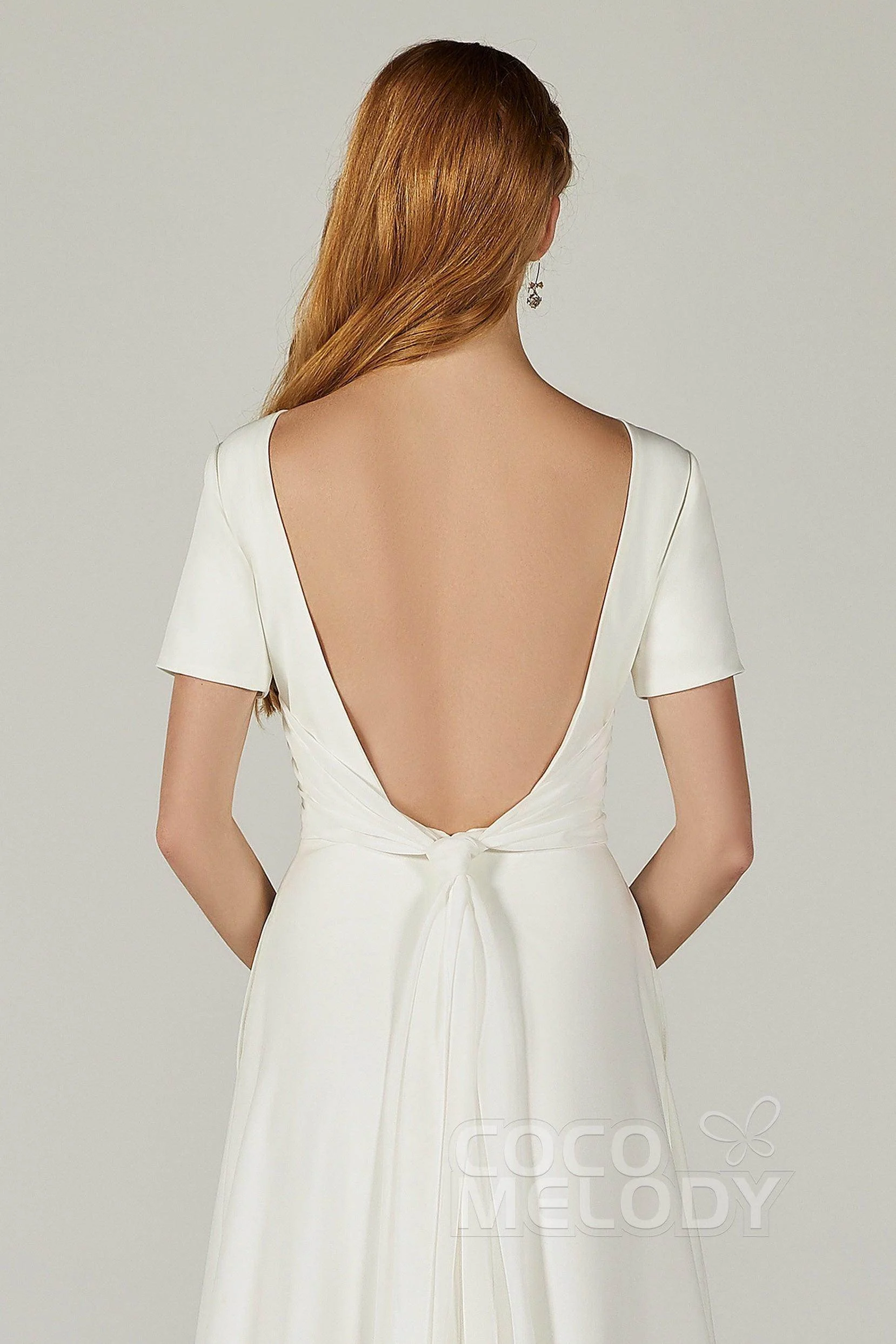 Cocomelody A-Line Sweep-Brush Train Elastic Fabric Wedding Dress