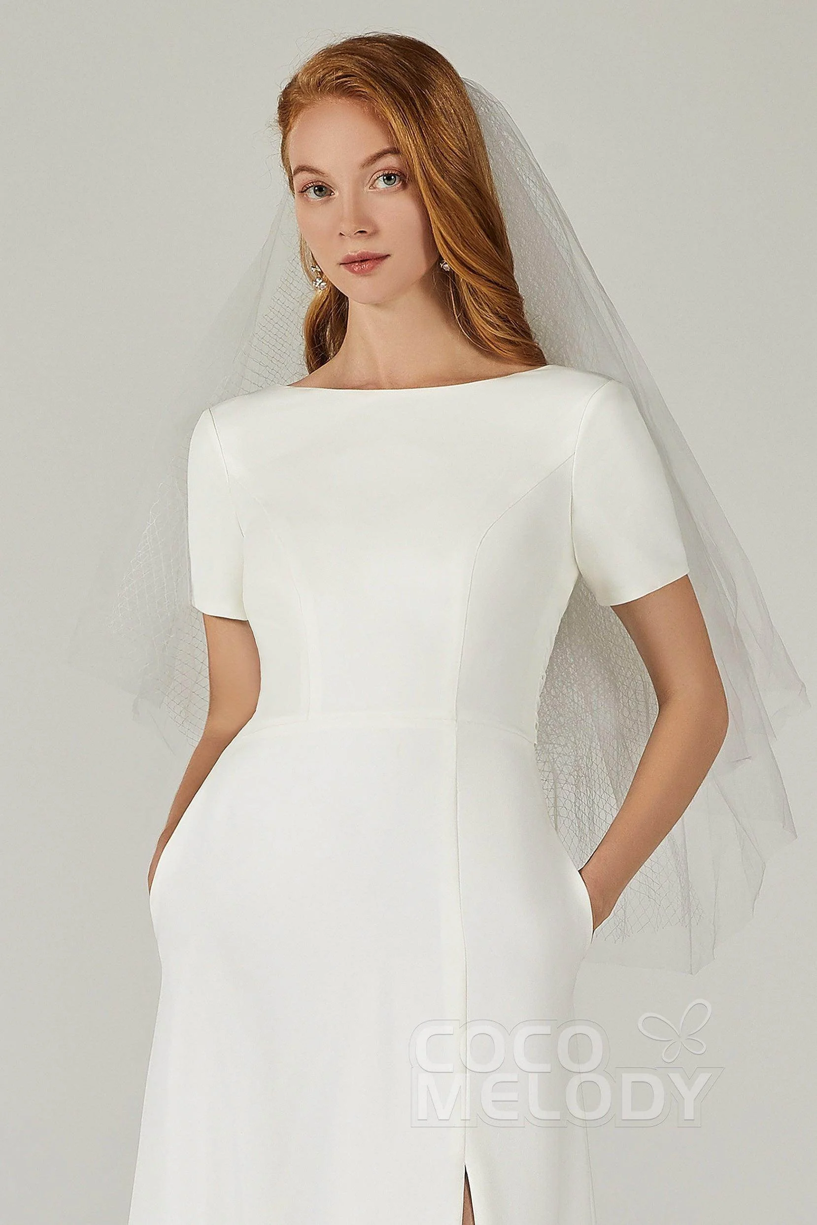Introducing the FAYE elegant wedding dress in ivory! This minimalist A-line gown features a bateau neckline, chic short sleeves, and practical pockets. Ideal for hotel, garden, beach, and hall weddings, it perfectly balances simplicity and sophistication for your special day !