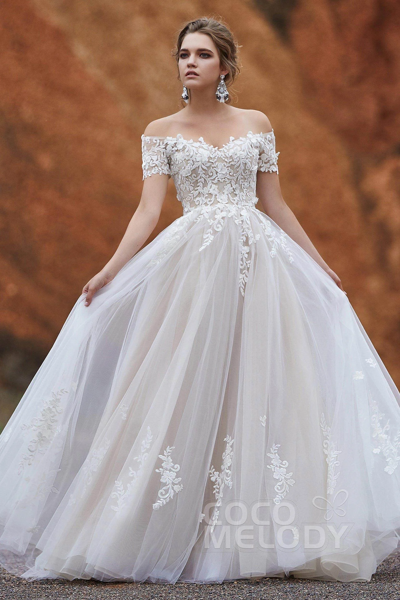 Cocomelody A-Line Sweep-Brush Train Tulle Gothic Wedding Dress