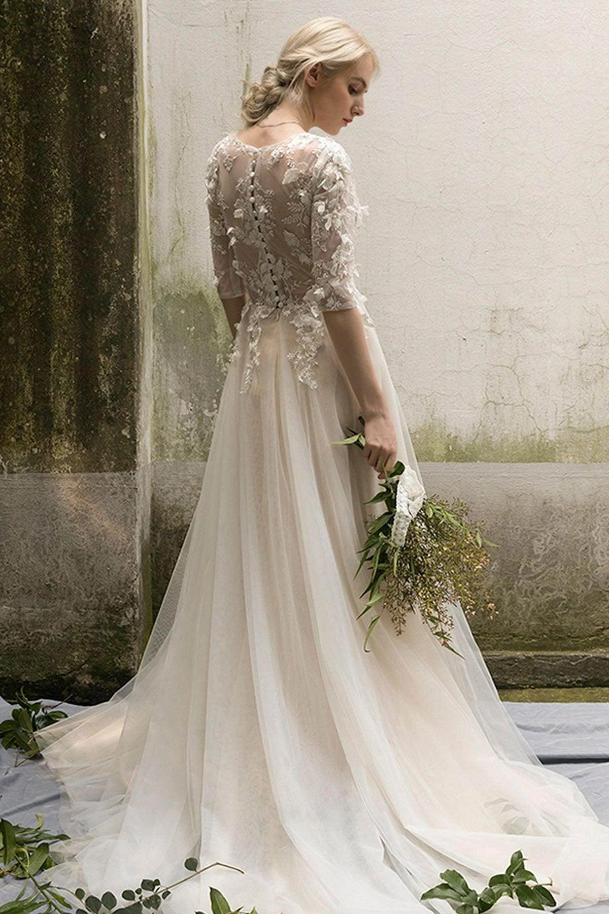 Discover the BREANNA wedding dress—an exquisite blend of elegance and charm in ivory. Adorned with appliqués, beading, and sequins, its A-line silhouette is perfect for any venue, from beach to hall weddings. Customize your dream look today!