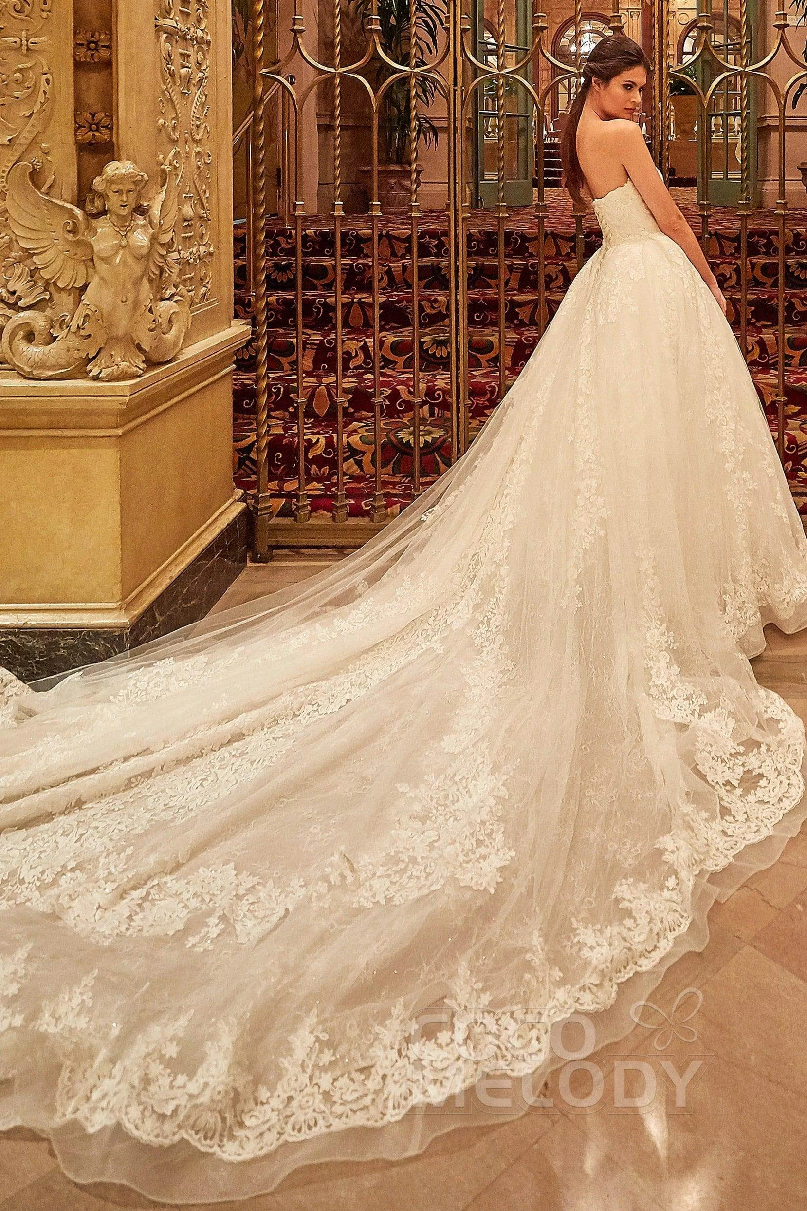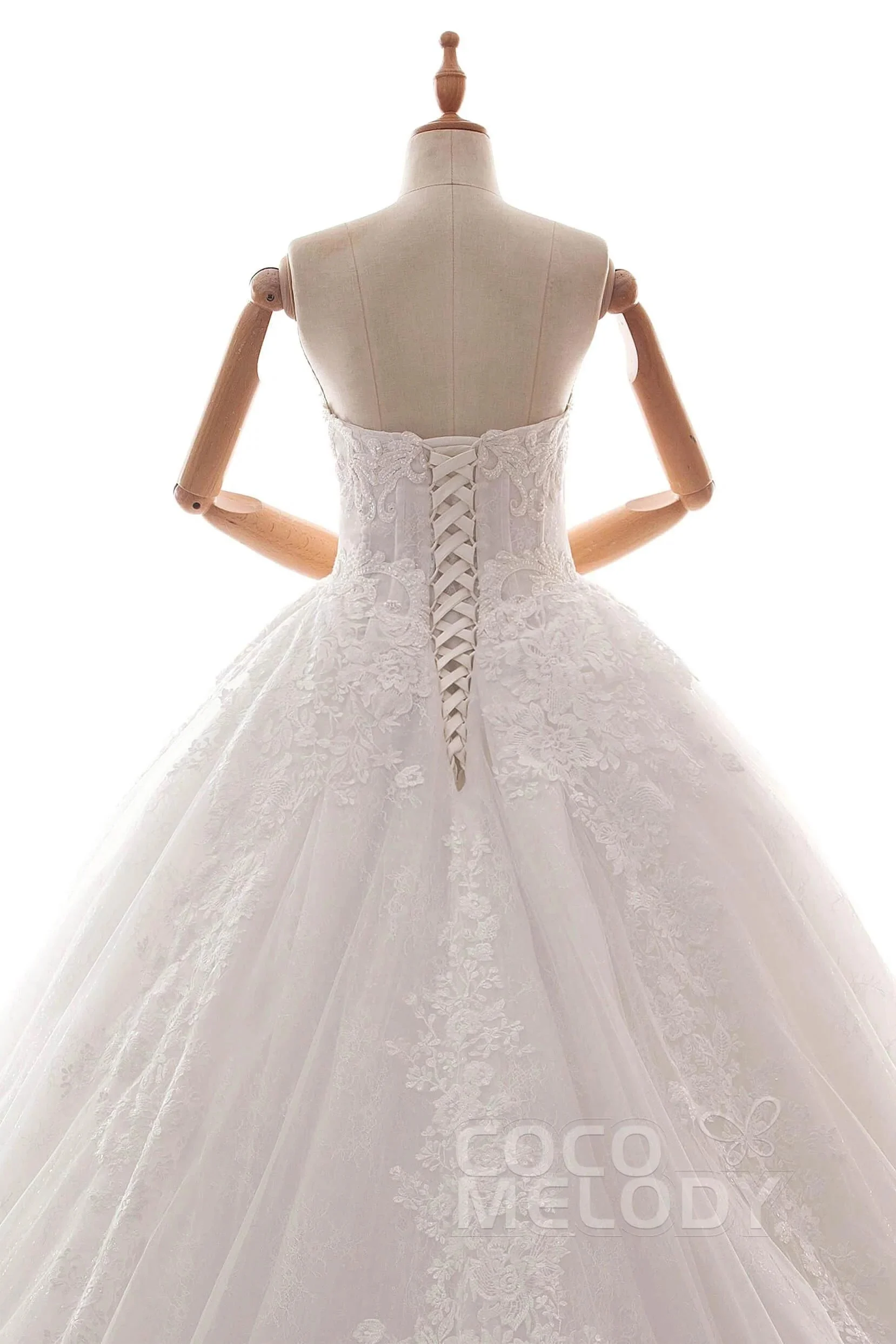 Cocomelody Ball Gown Cathedral Train Tulle Lace Wedding Dress
