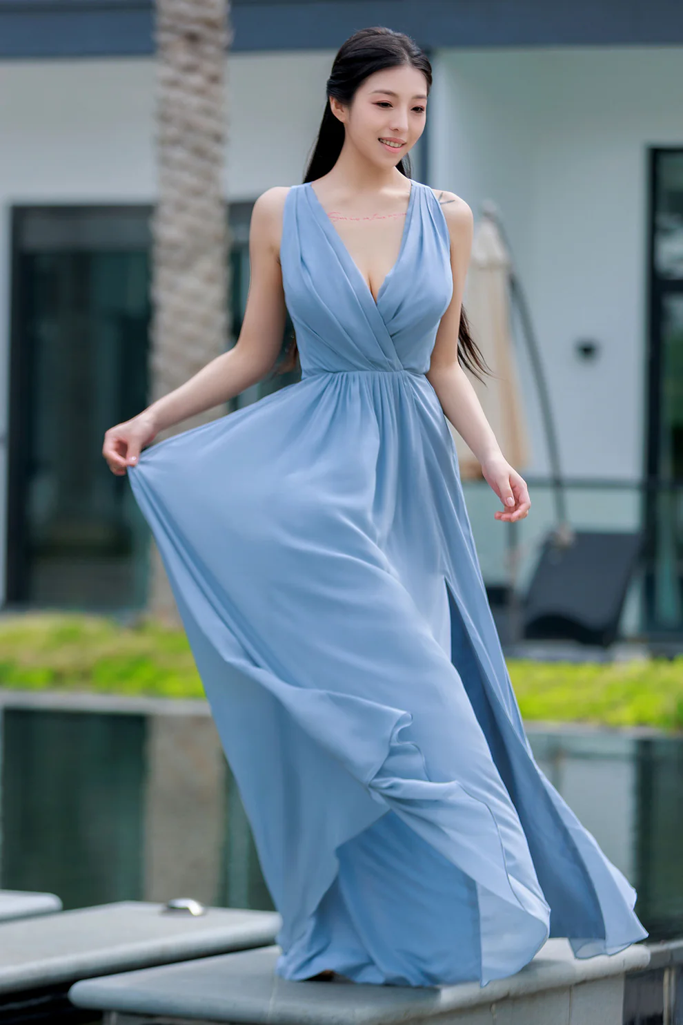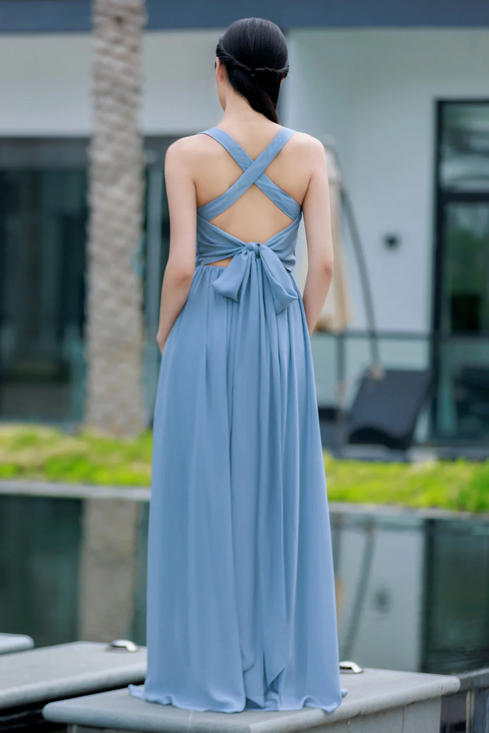 Cocomelody Bow A-Line Floor Length Chiffon Bridesmaid Dress