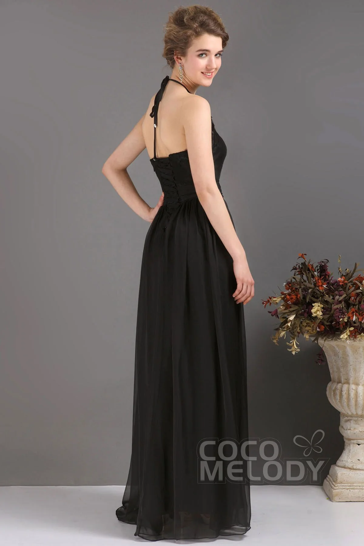 Cocomelody Corset Sheath-Column Floor Length Chiffon Dress