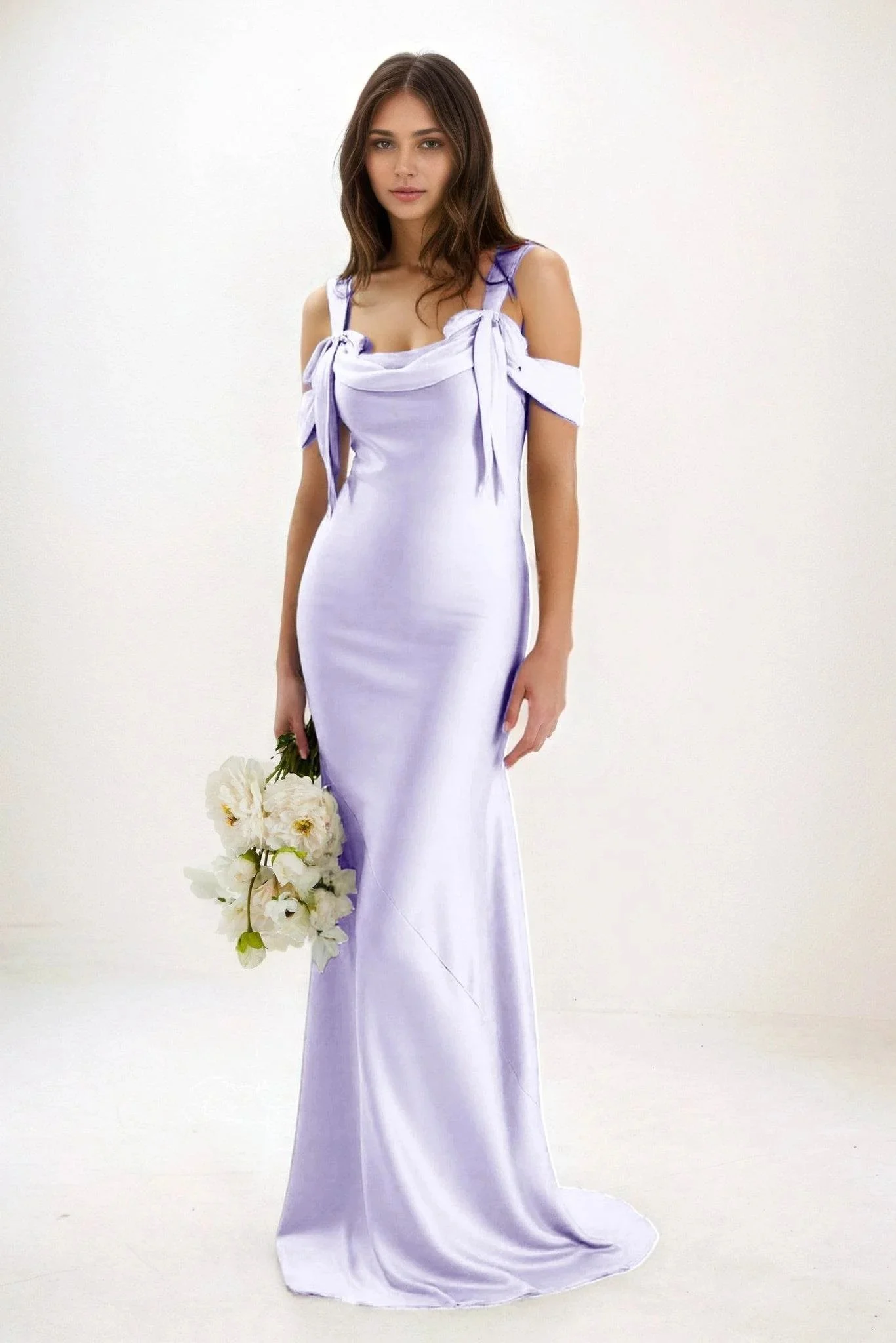 Cocomelody Sheath-Column Maxi Luxe Bateau Satin Bridesmaid Dress