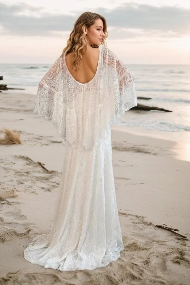 Cocomelody Sheath-Column Sweep-Brush Train Lace Wedding Dress