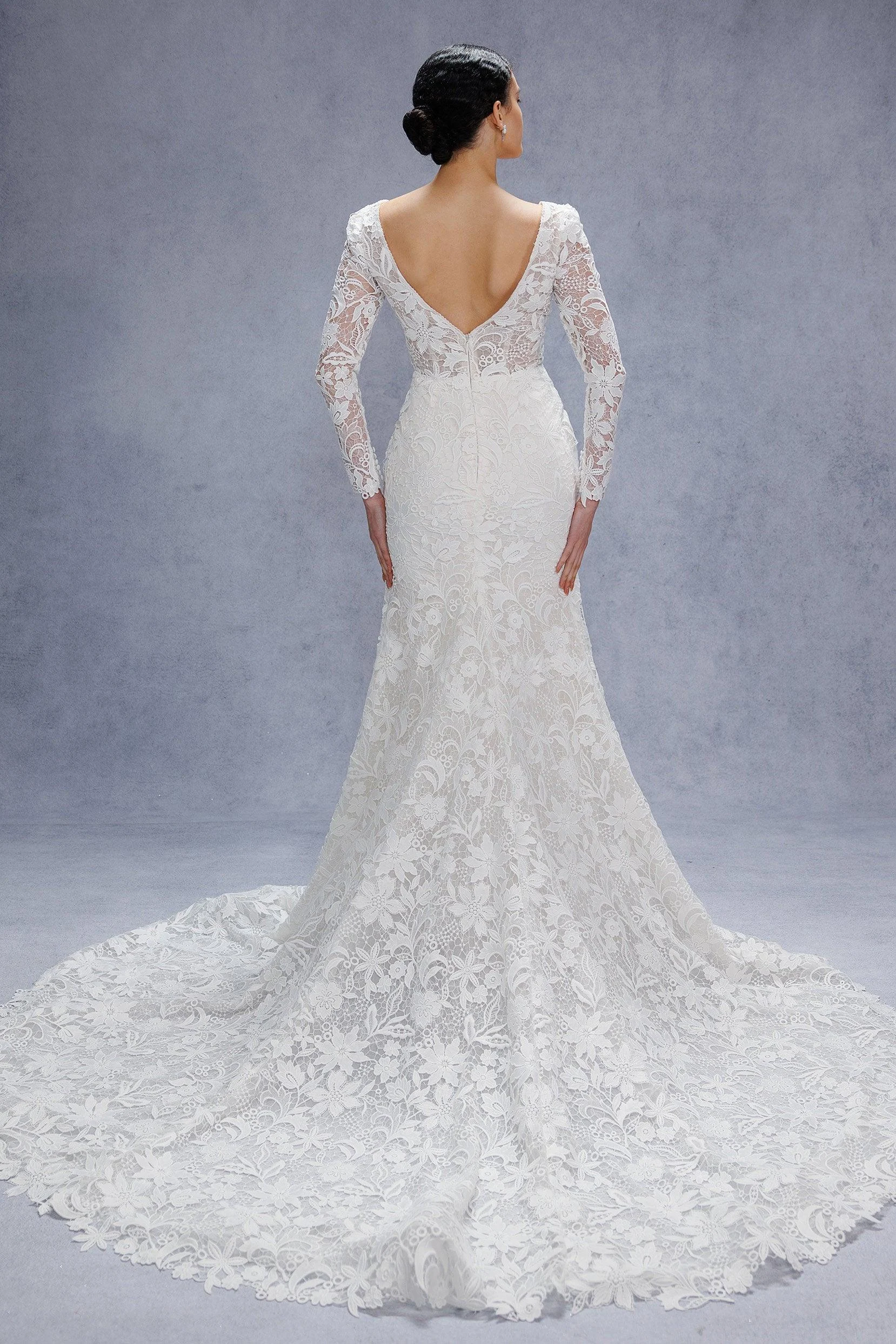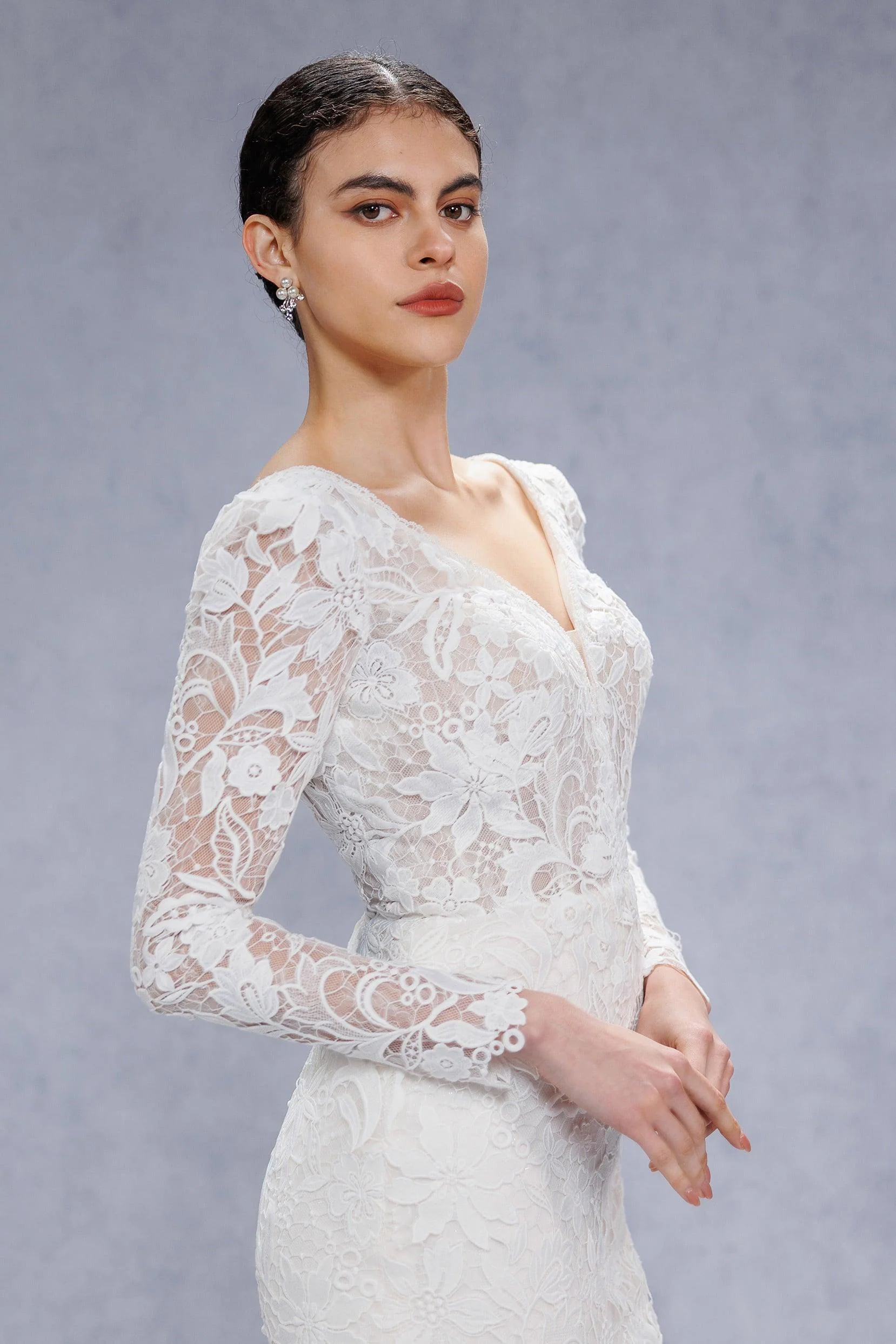 Cocomelody Trumpet-Mermaid Court Train Lace Tulle Wedding Dress