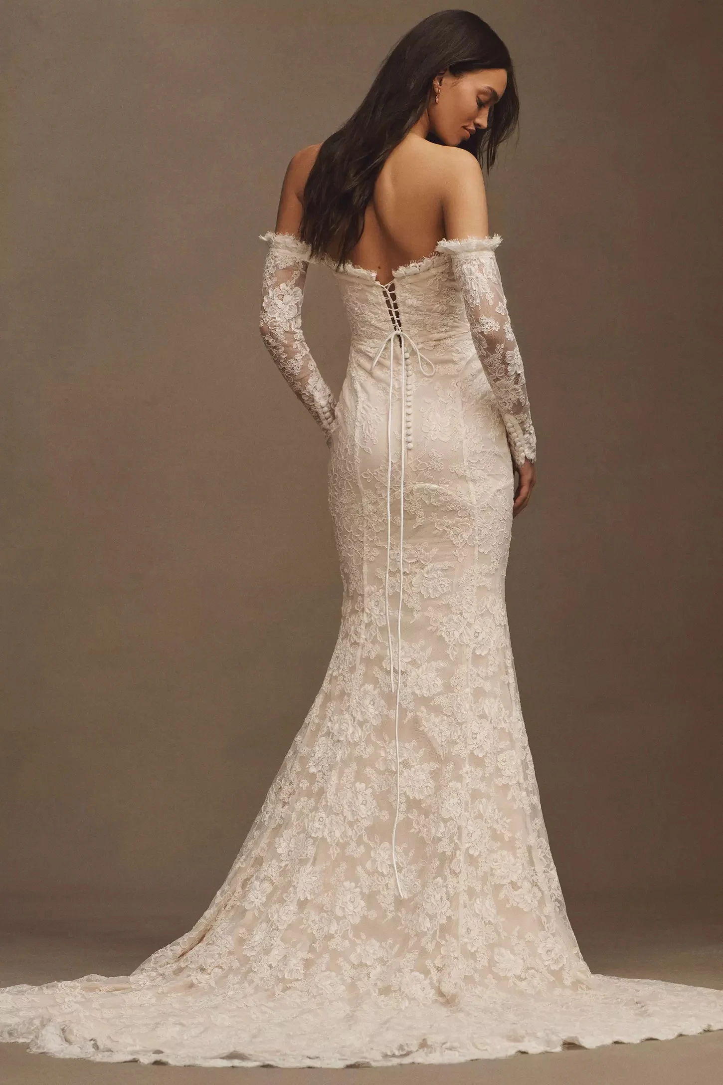 Daughters of Simone Sequoia Lace Off-The-Shoulder Long-Sleeve Mermaid Wedding Gown