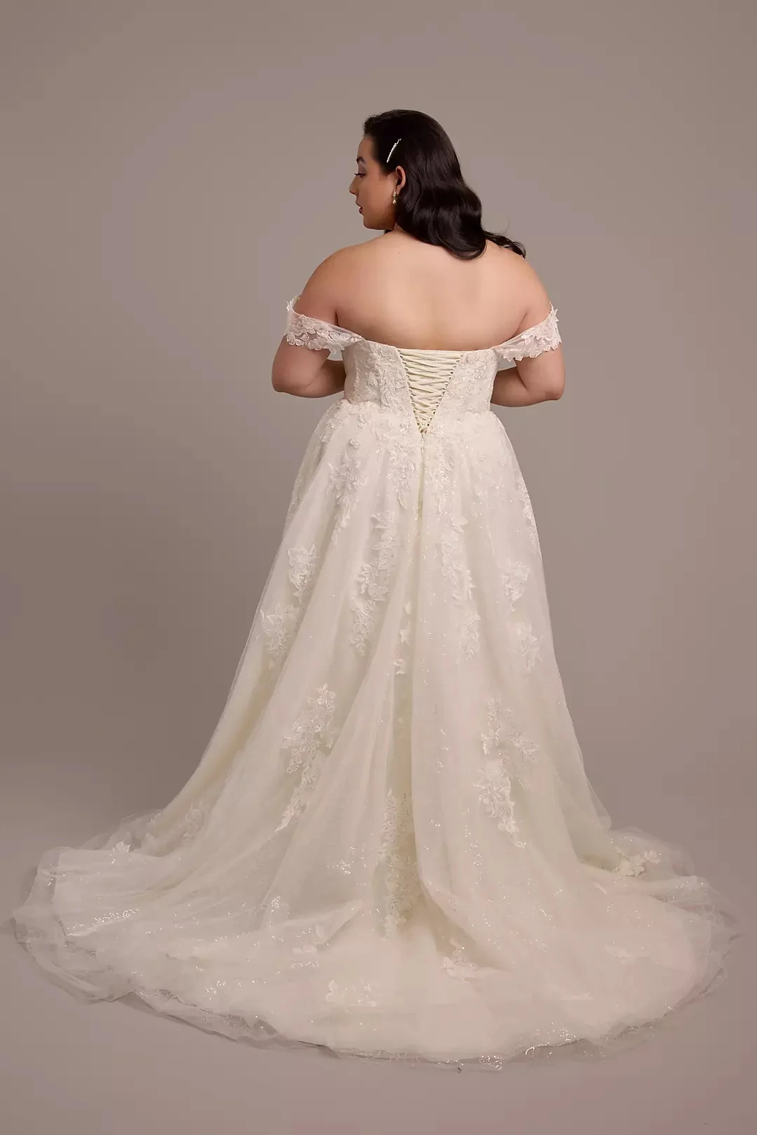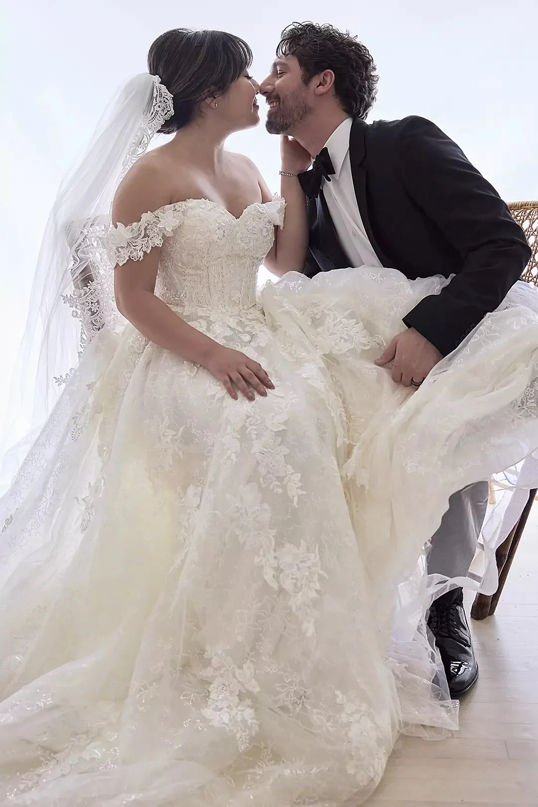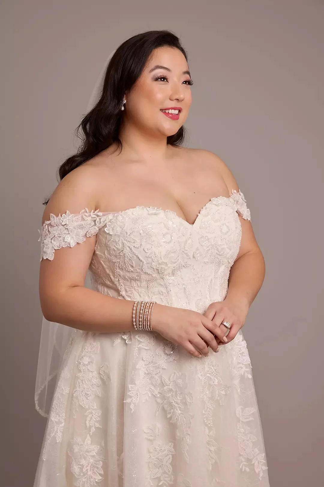 David’s Bridal Off-the-Shoulder Lace-Up Back Wedding Dress