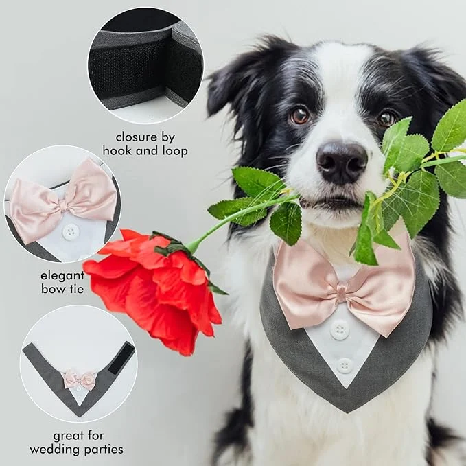 Dog Tuxedo,Formal Dog Wedding Bandana Dog Collar with Bow