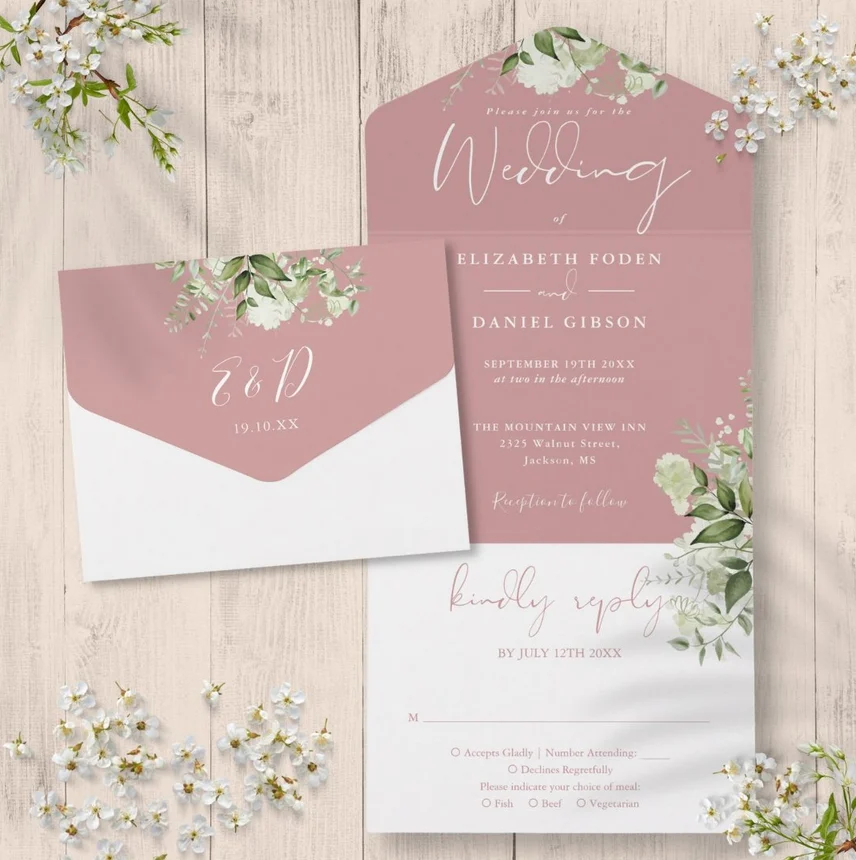 Dusty Rose Floral Greenery Wedding Suite