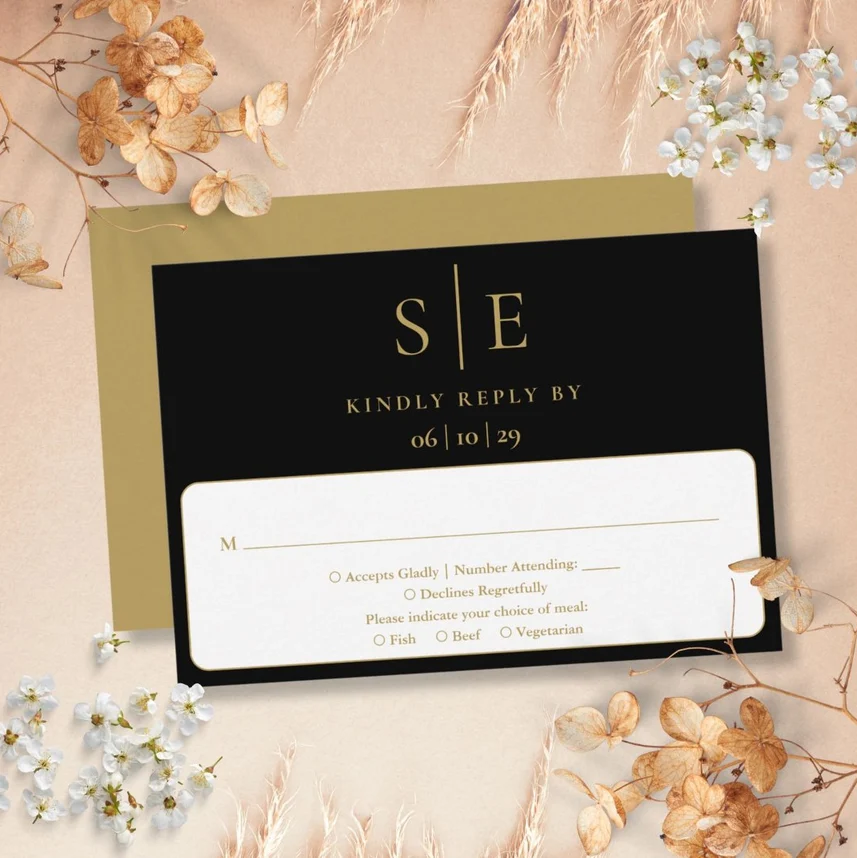 Elegant Black And Gold Monogram Wedding Suite