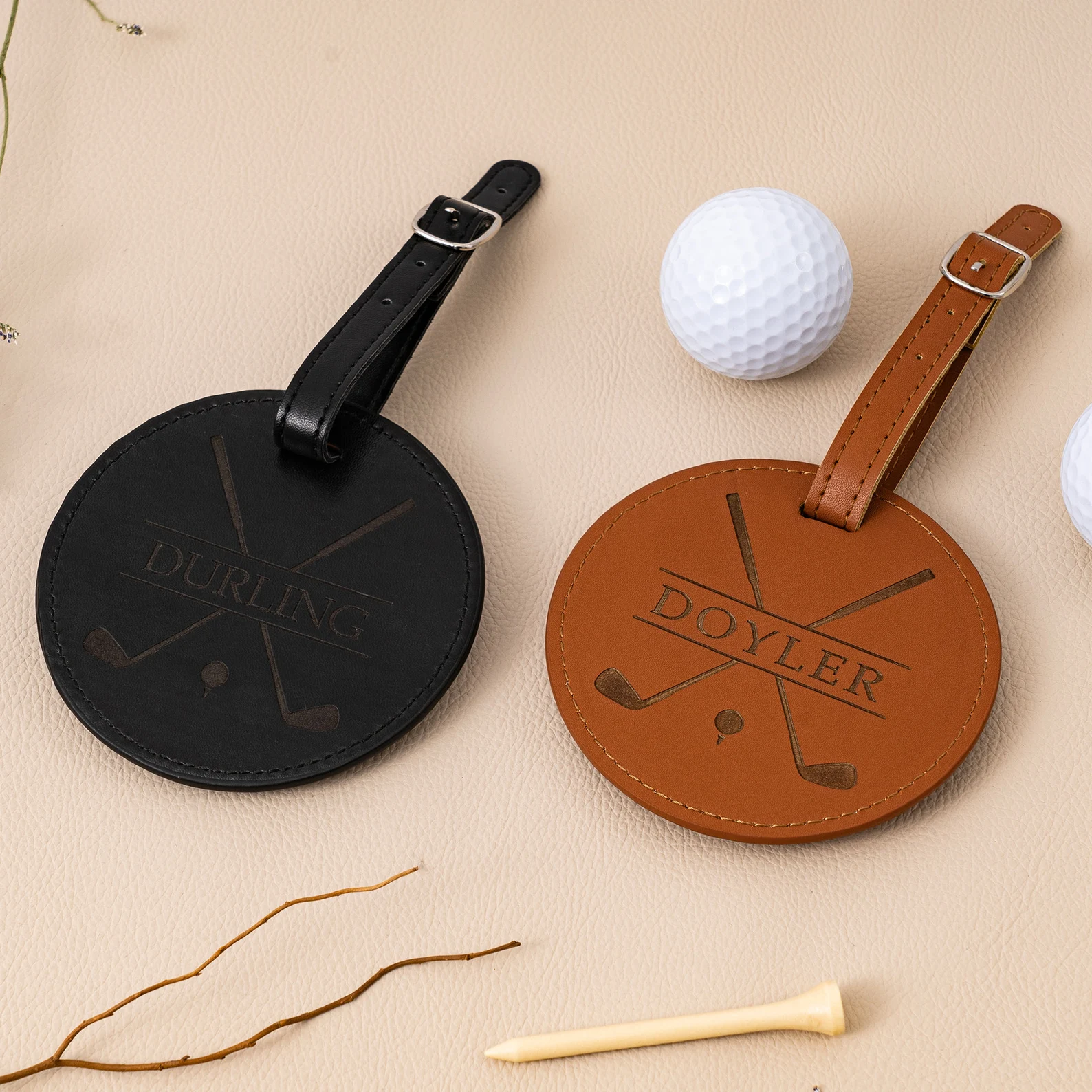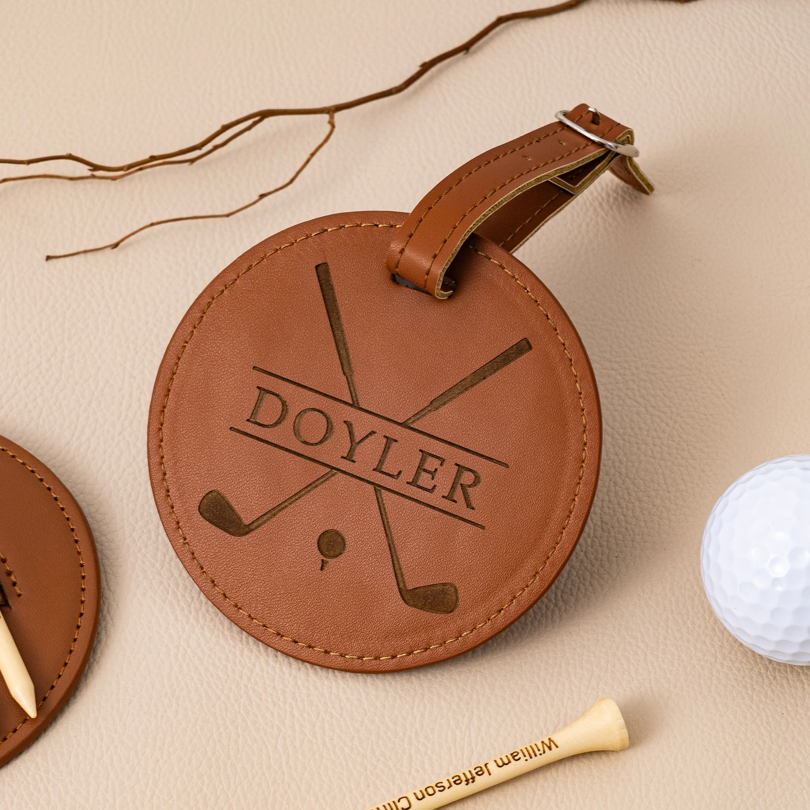 Engraved Leather Golf Bag Tag Gift with Golf Tees