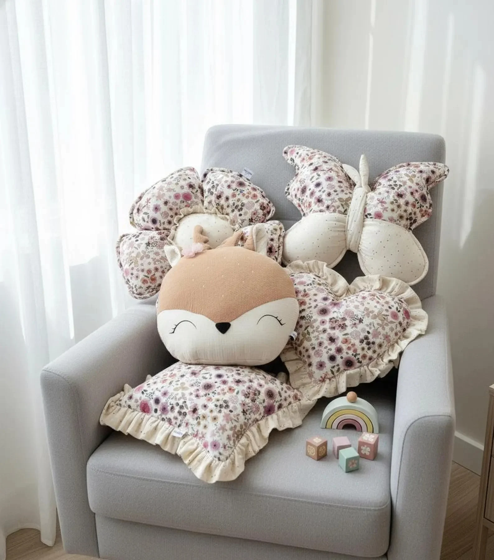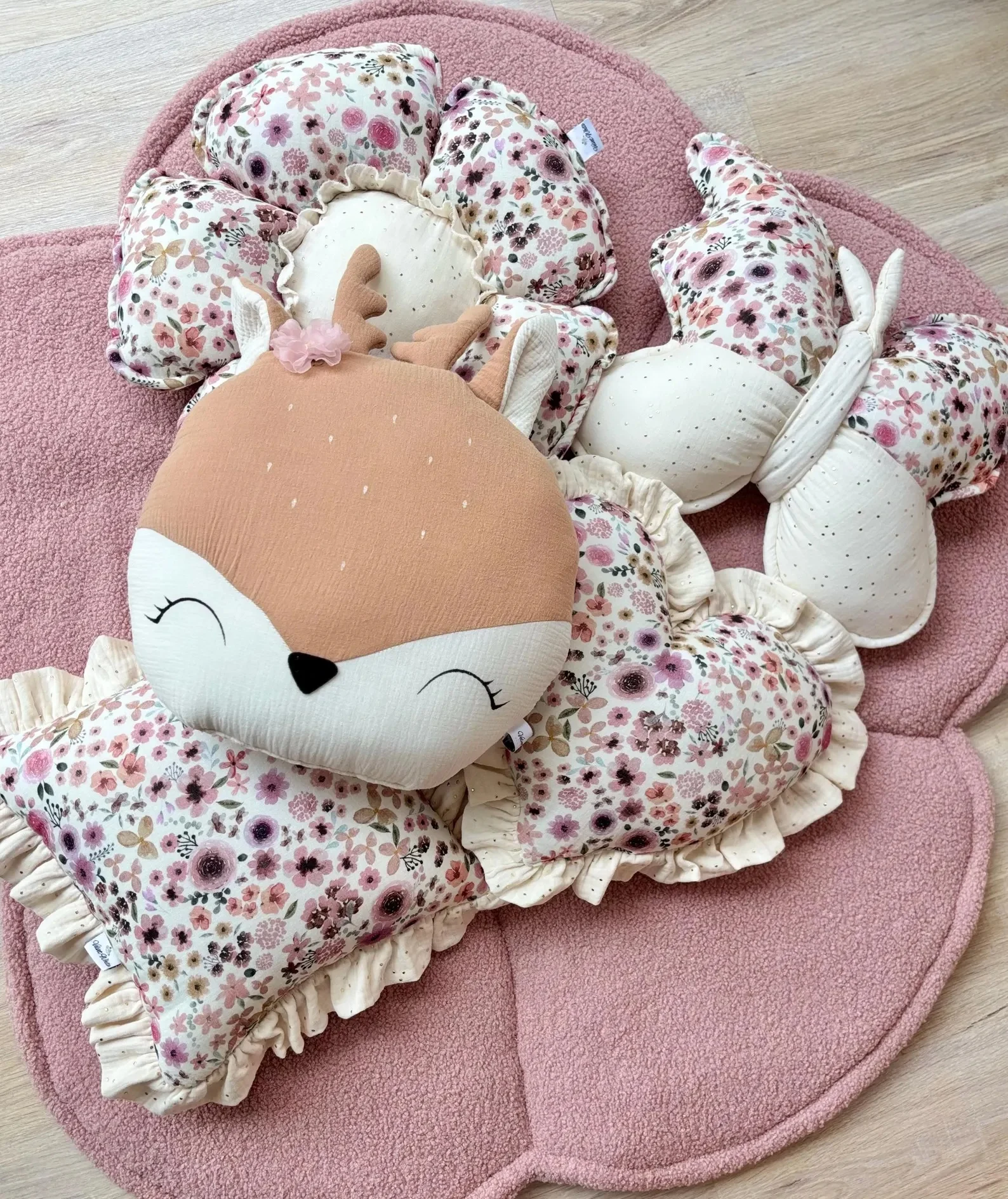 Bring a touch of sweetness and nature into your child’s room with this Floral Deer Pillow Set, handmade from soft cotton muslin and premium floral fabrics. Each cushion is carefully sewn in a small family workshop in Greece, combining delicate details and gentle textures that make your nursery warm and inviting.