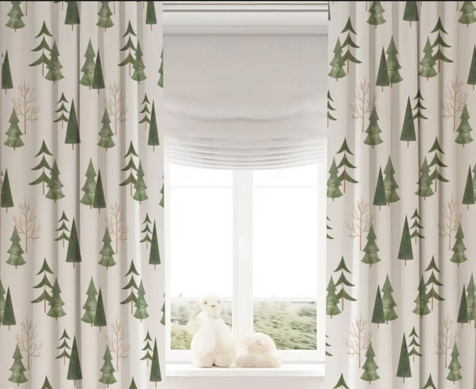 Etsy Watercolor Pine Tree Nursery Curtains
