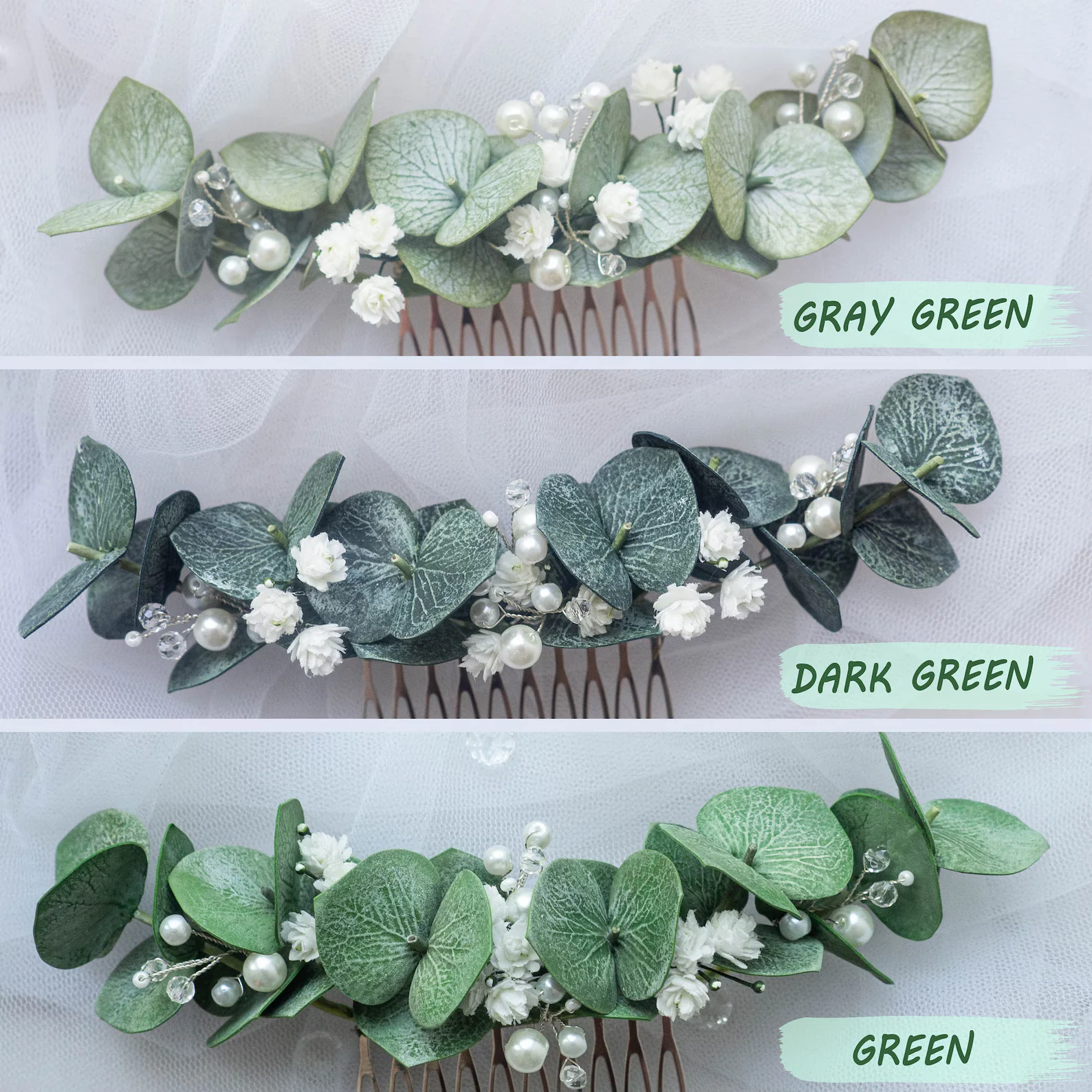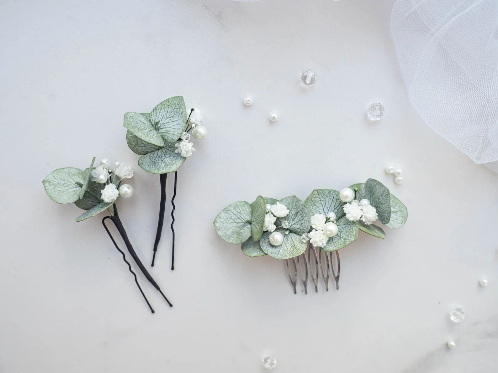 Eucalyptus Pearl Bridal Hair Piece