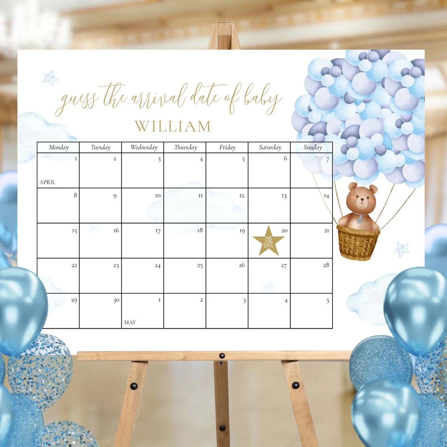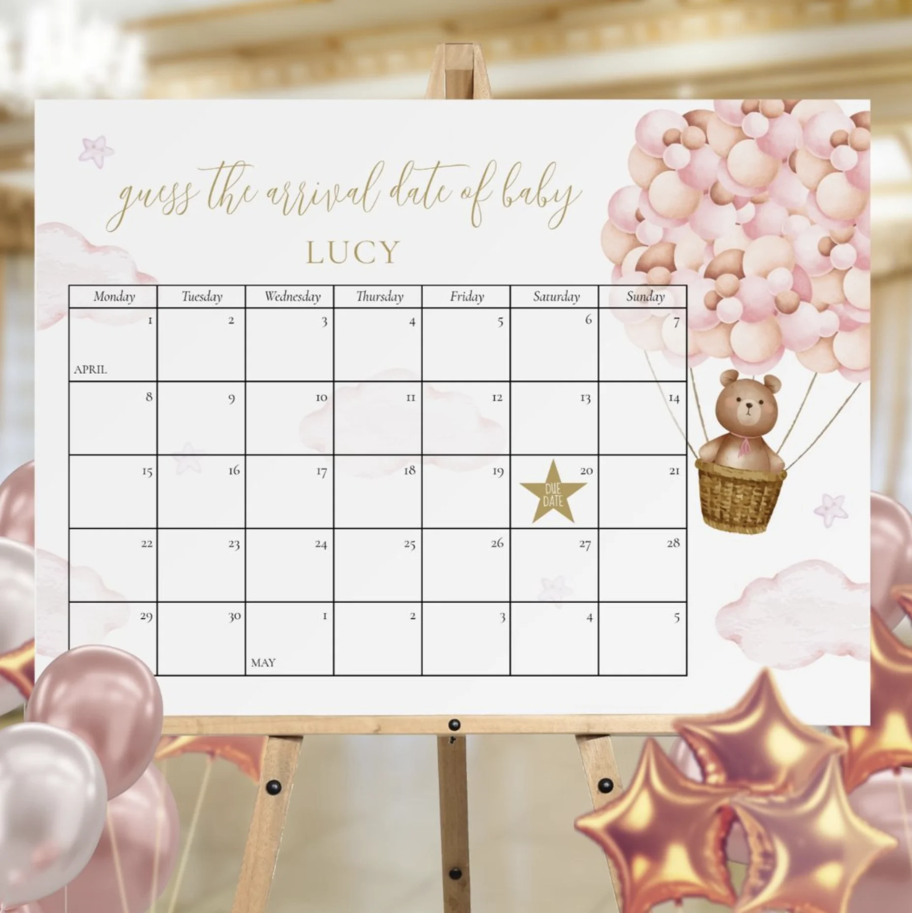 Guess The Due Date Teddy Bear Baby Shower Game Foam Board