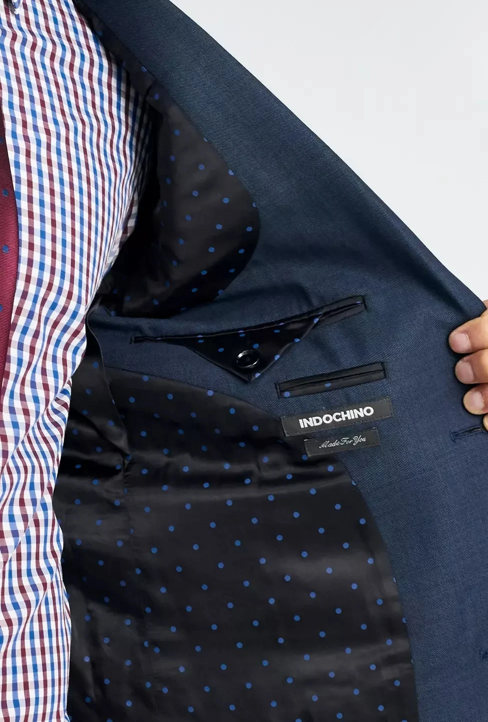 Stand out and make a statement in the Hayle. This stylish, medium weight navy suit has a rich textured appearance and soft hand-feel. In addition to being custom made to your unique measurements and specifications, Indochino suits are built with top quality components and thoughtful construction.