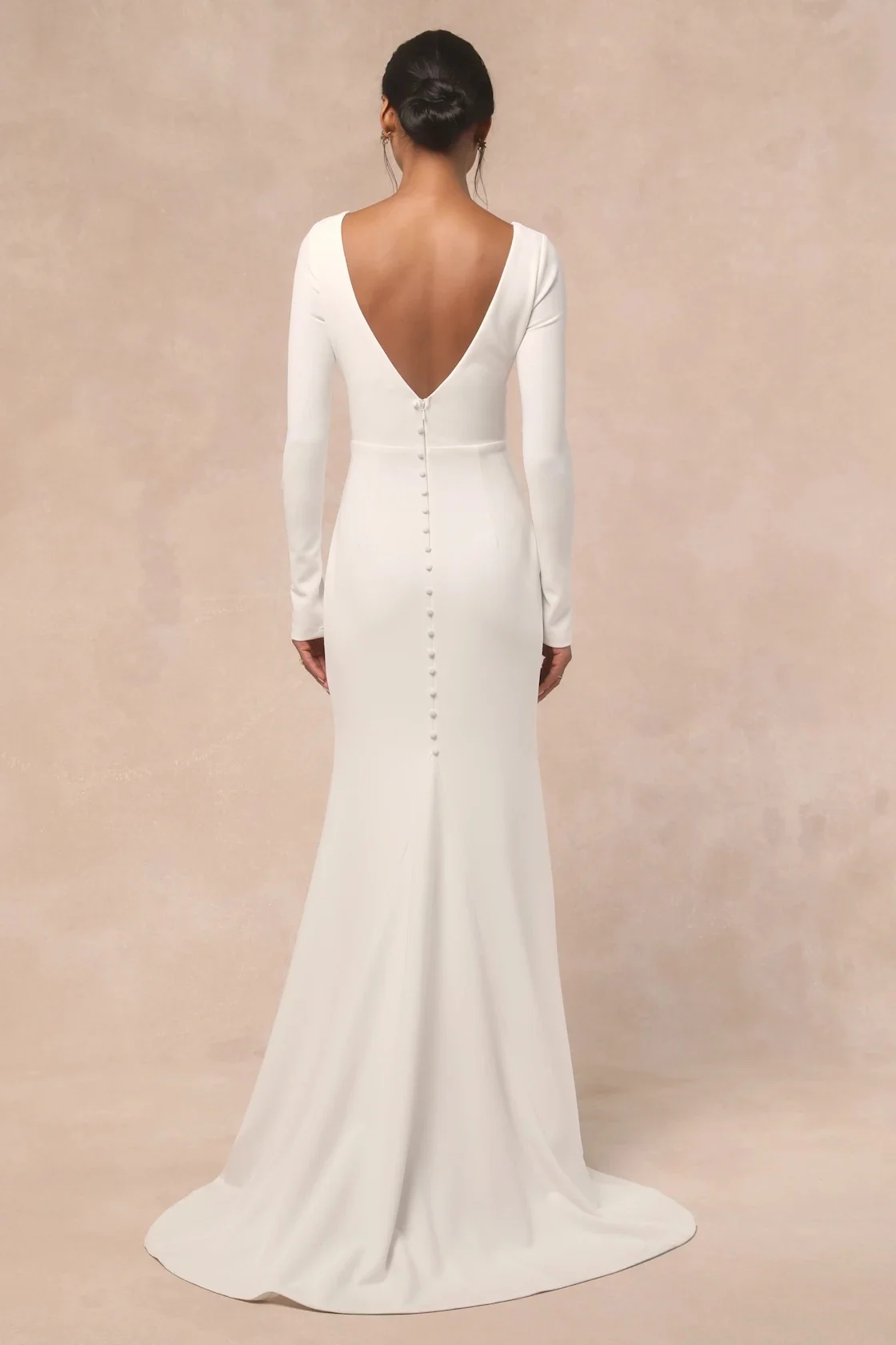 Lulus Feeling of Forever White Long Sleeve Mermaid Maxi Dress