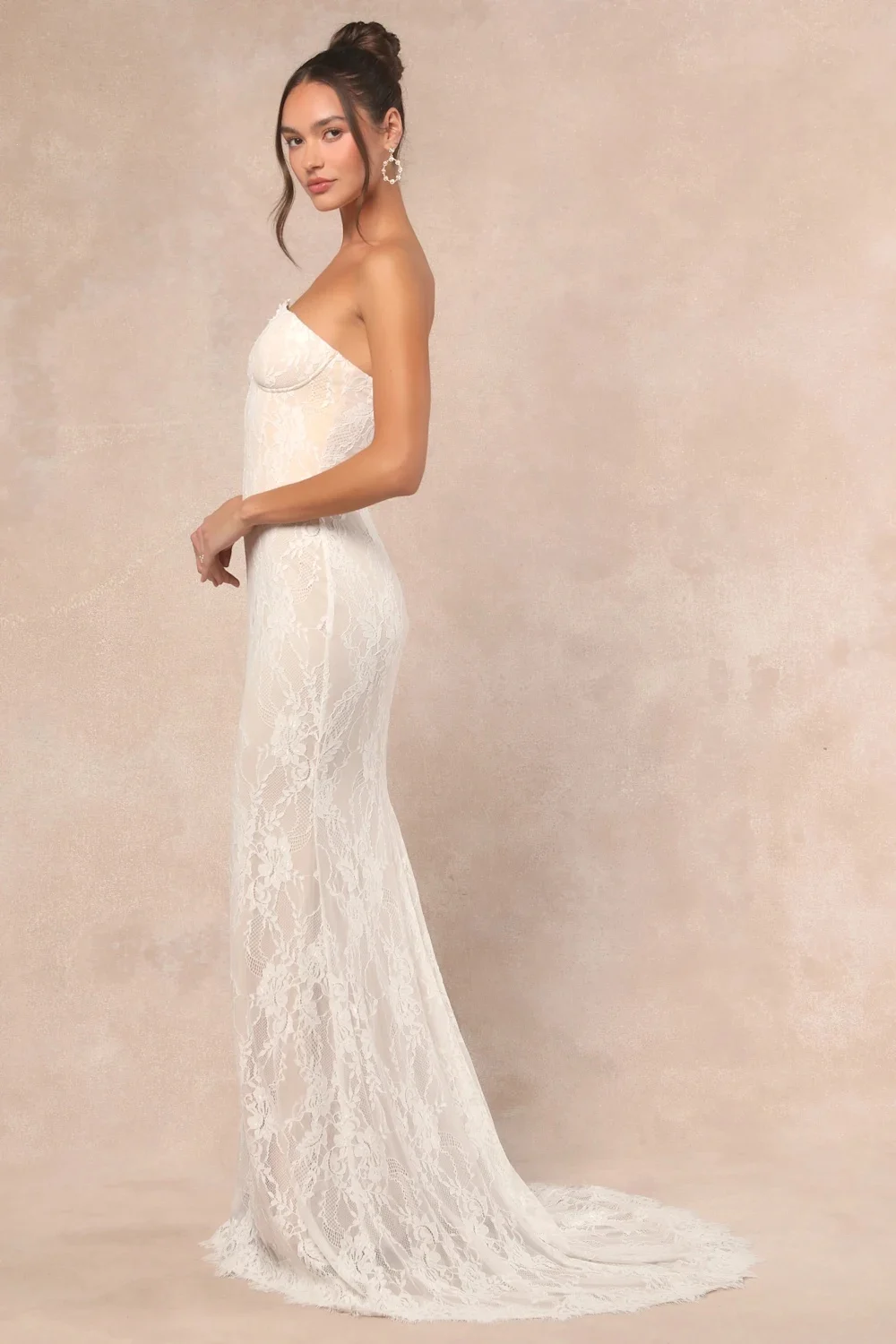 Lulus Valeria White Lace Strapless Bustier Maxi Dress