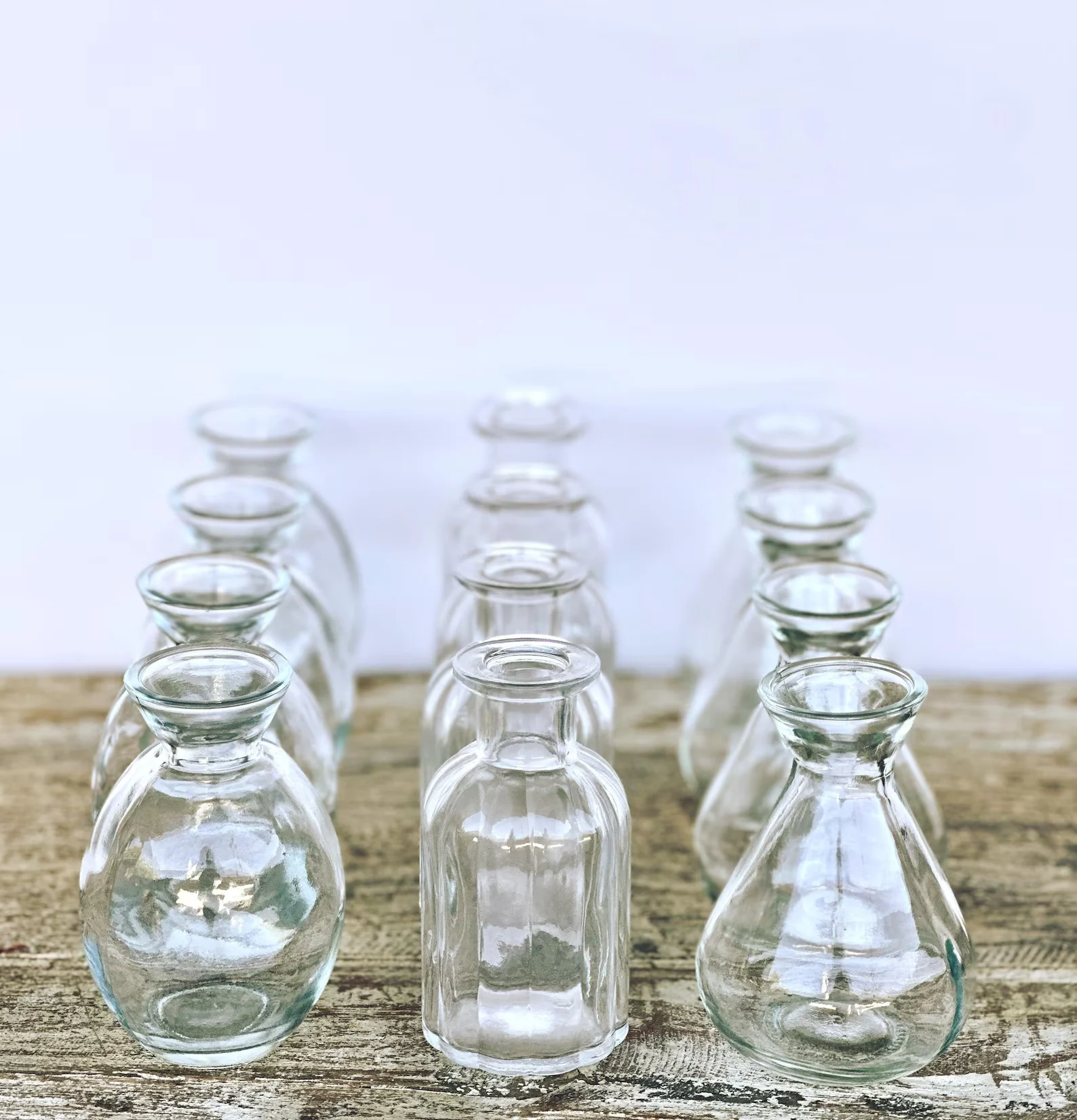 Elevate your home or event décor with this beautiful set of 12 small glass bud vases. Perfectly sized for single stems or petite arrangements, these versatile glass bud vases add a timeless touch to any table, shelf, or entryway.