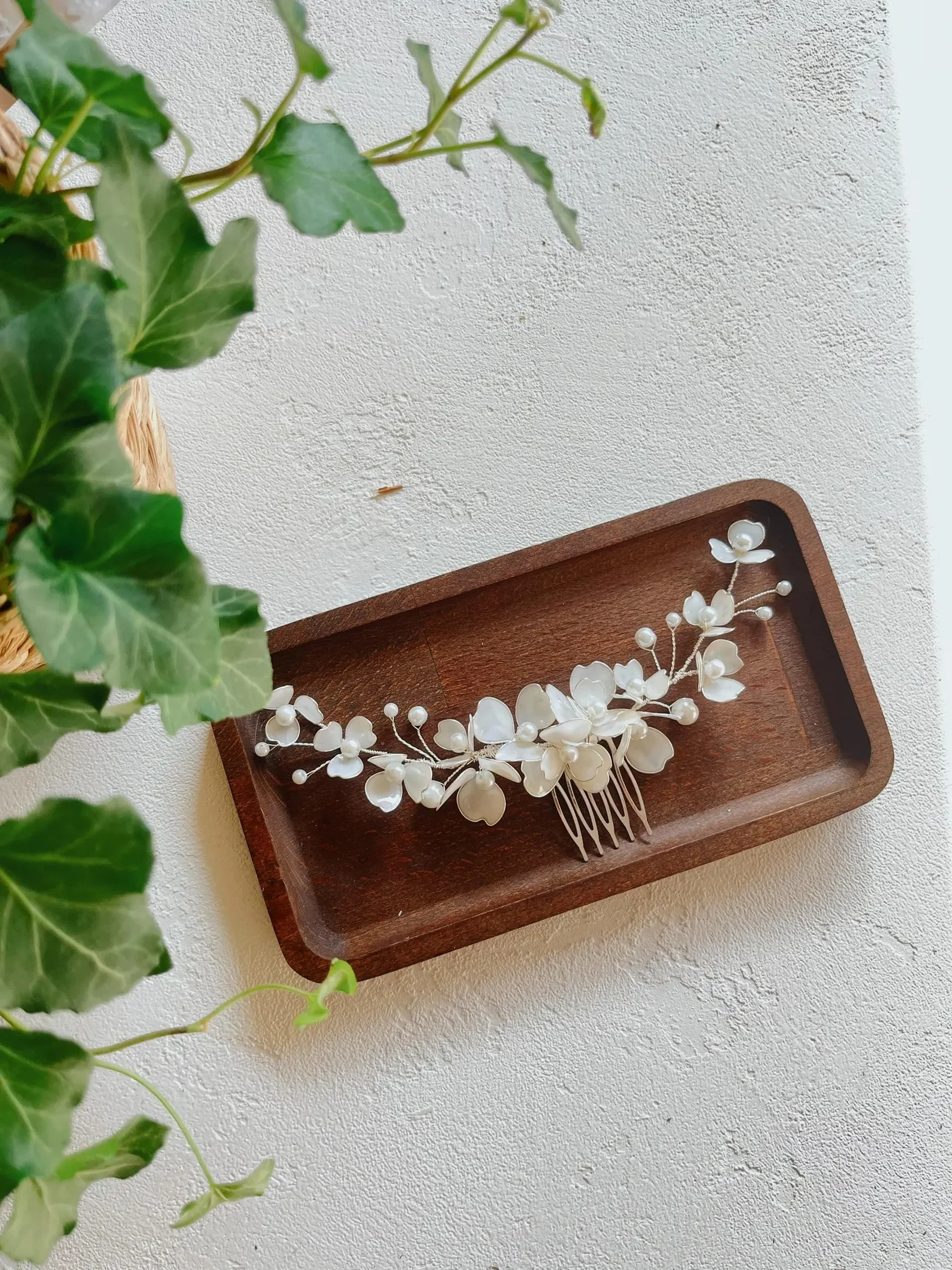 This romantic 16 cm hair comb is handmade with wire and resin, featuring soft resin flowers and delicate pearls that hold their shape all day—no wilting, only timeless beauty.