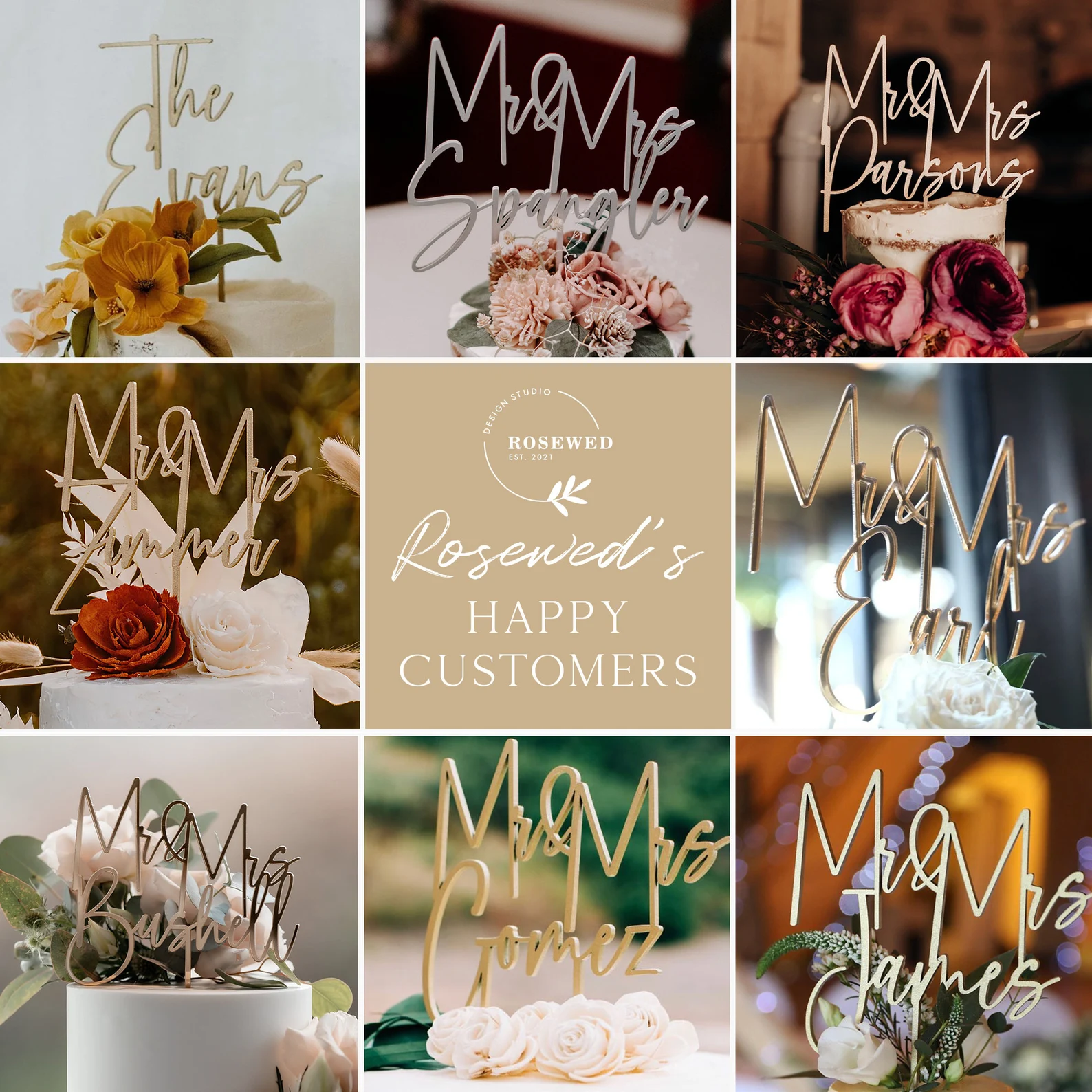 Personalized Gold Cake Topper For Wedding